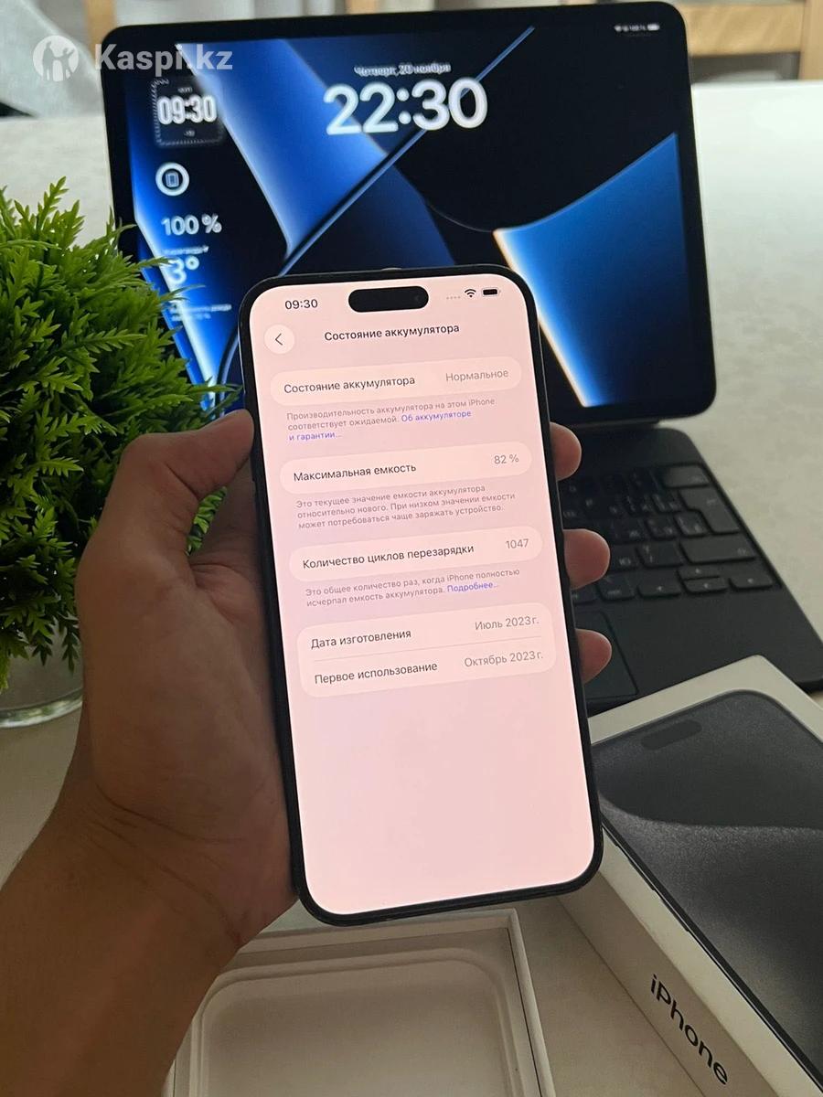 Продам Айфон 15 Про Макс Состояние : нормальное Менялся дисплей на хороший! 120герц , без рамок Не работает FACE ID из за падения В остальном в норме , по корпусу есть косяки Коробка есть Память : 256гб АКБ : 82% Цена : 355.000тг Торг