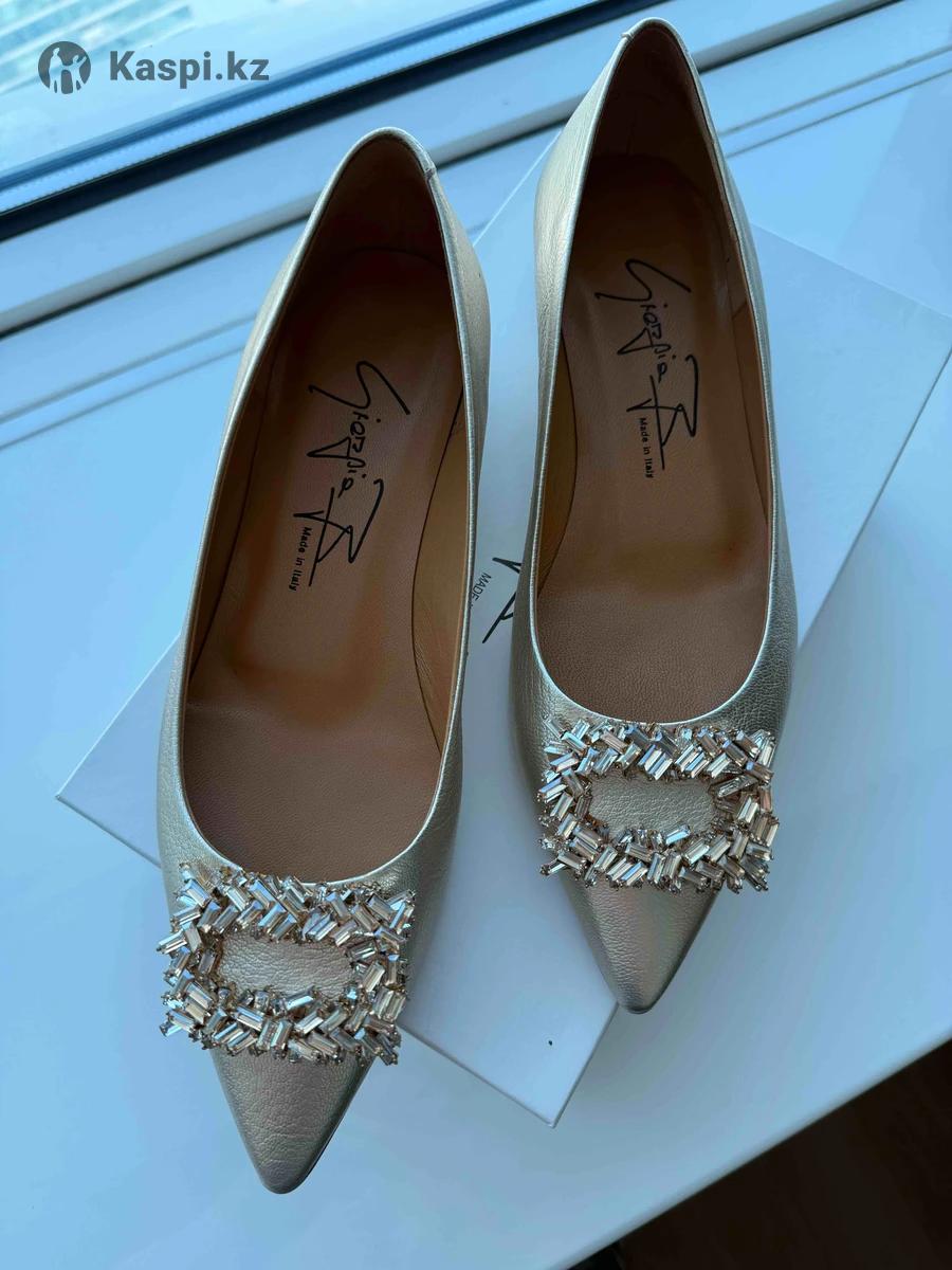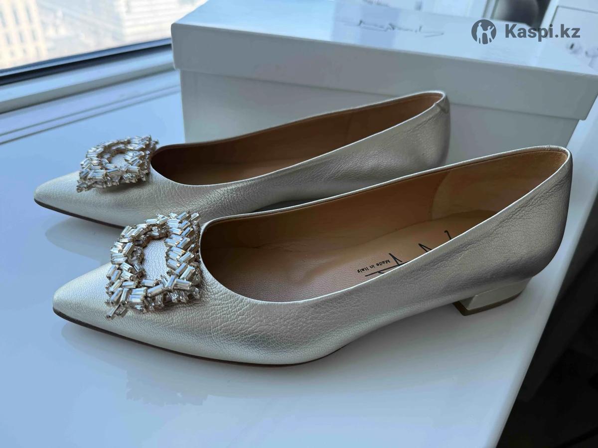 Элегантные кожаные туфли с кристальной пряжкой Swarovski💫 Элегантные женские туфли итальянского производства в изысканном платиново-золотом оттенке. Модель с острым носком визуально вытягивает силуэт, а крупная декоративная пряжка с кристаллами Swarovski придает обуви роскошный и нарядный вид. Верх выполнен из натуральной кожи мягкой, качественной и комфортной в носке. Туфли отлично подойдут как для торжественных мероприятий, так и для стильных повседневных образов с платьями, юбками или брюками. Размер 38 (EU). В комплекте коробка. Маломерит на 37 размер