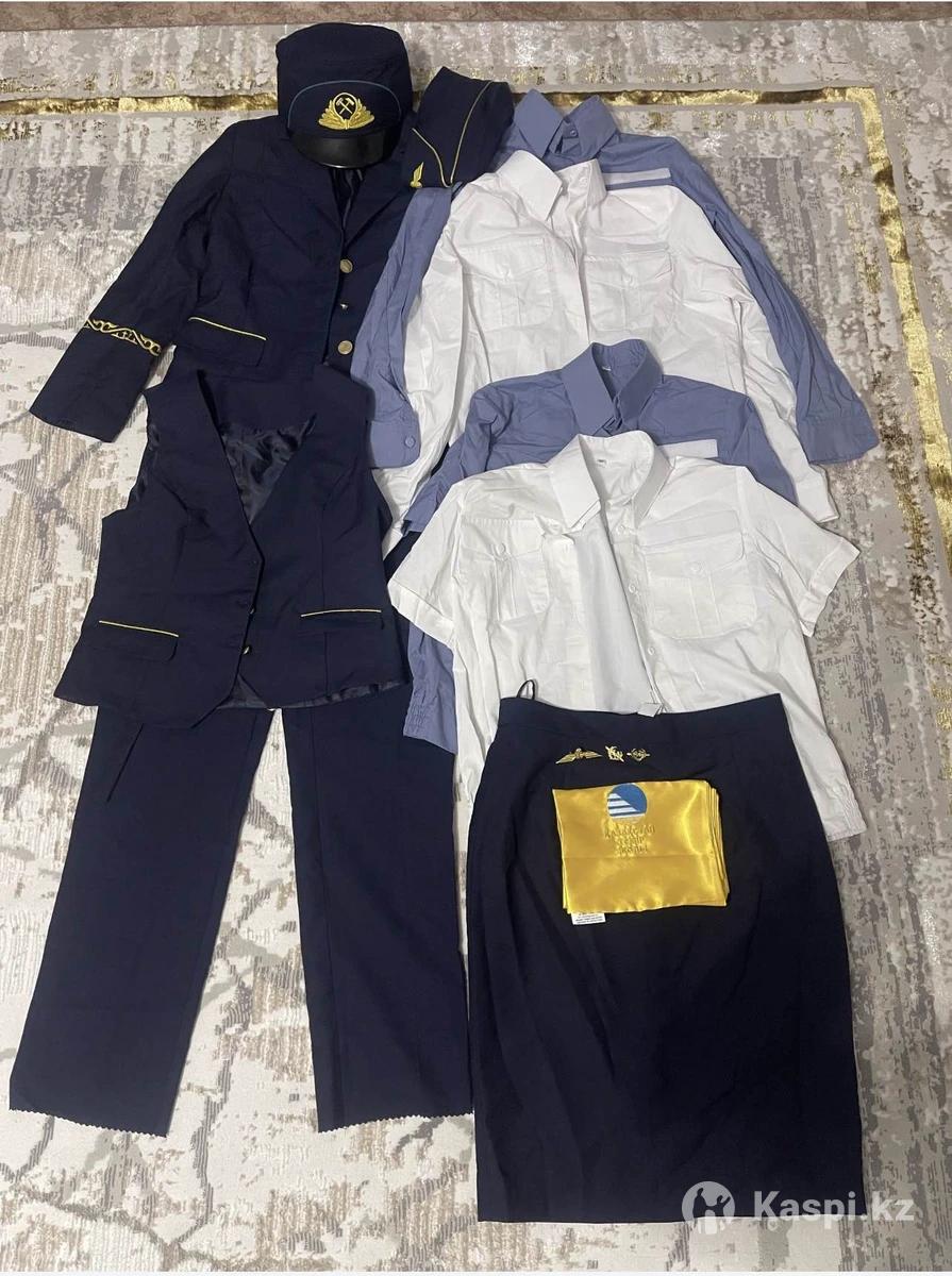 Новый железно дорожная форма в комплекте (пиджак,брюки, желетка, юбка, 2 рубашки с коротким рукавом синие и белые 2 рубашки длинным рукавом синие и белые а также фуражка,пилотка и галстук) Размер 4