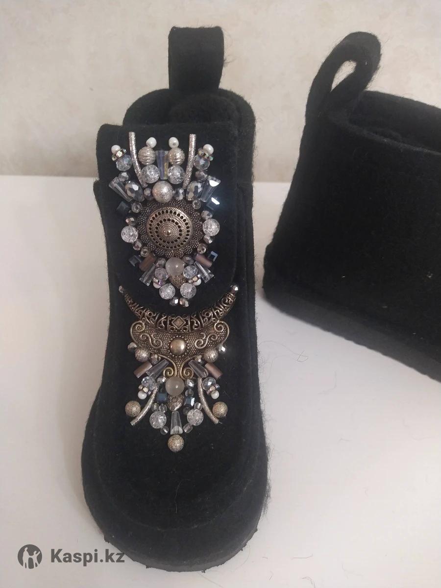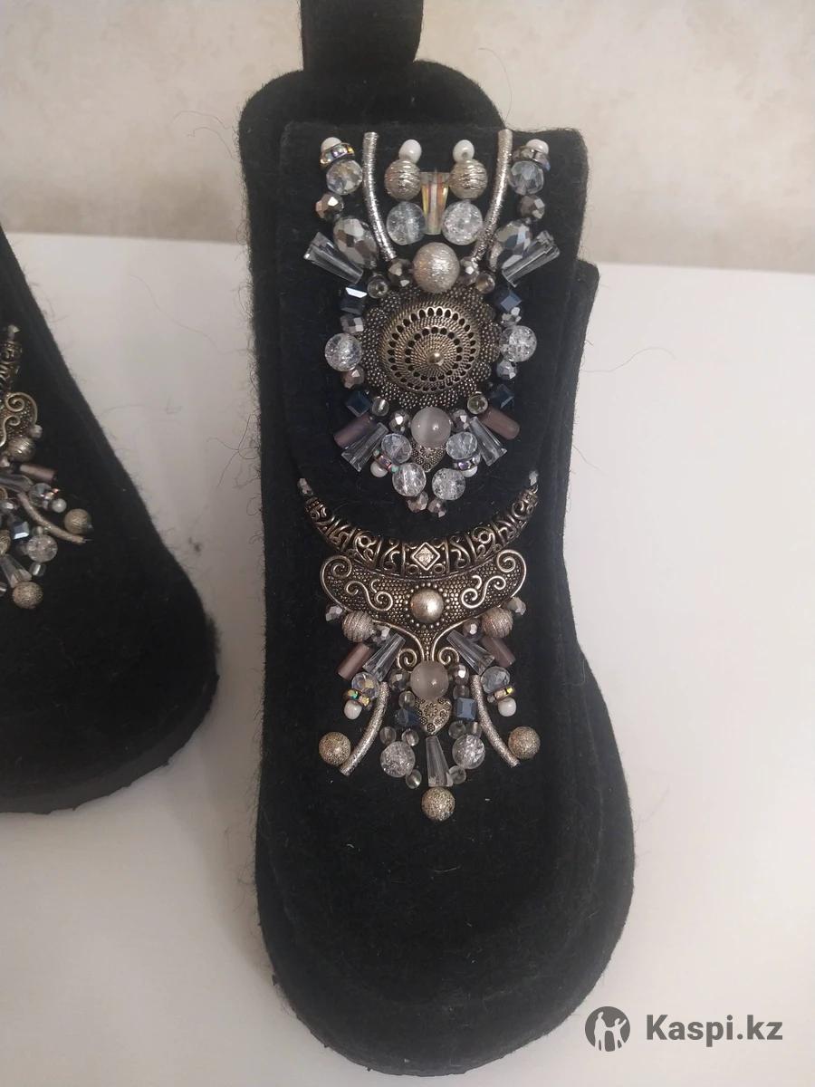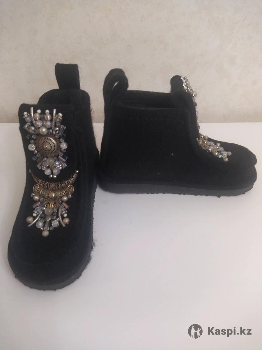 Продам женские ботинки, материал войлок. Авторская работа. Украшена камнями, стразами. В комплекте прилагается пара вязанных гетров.