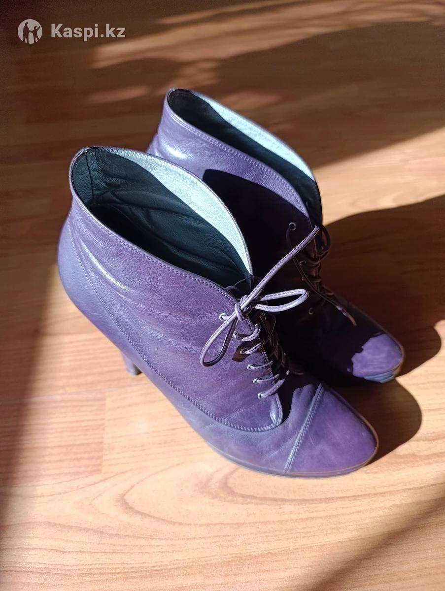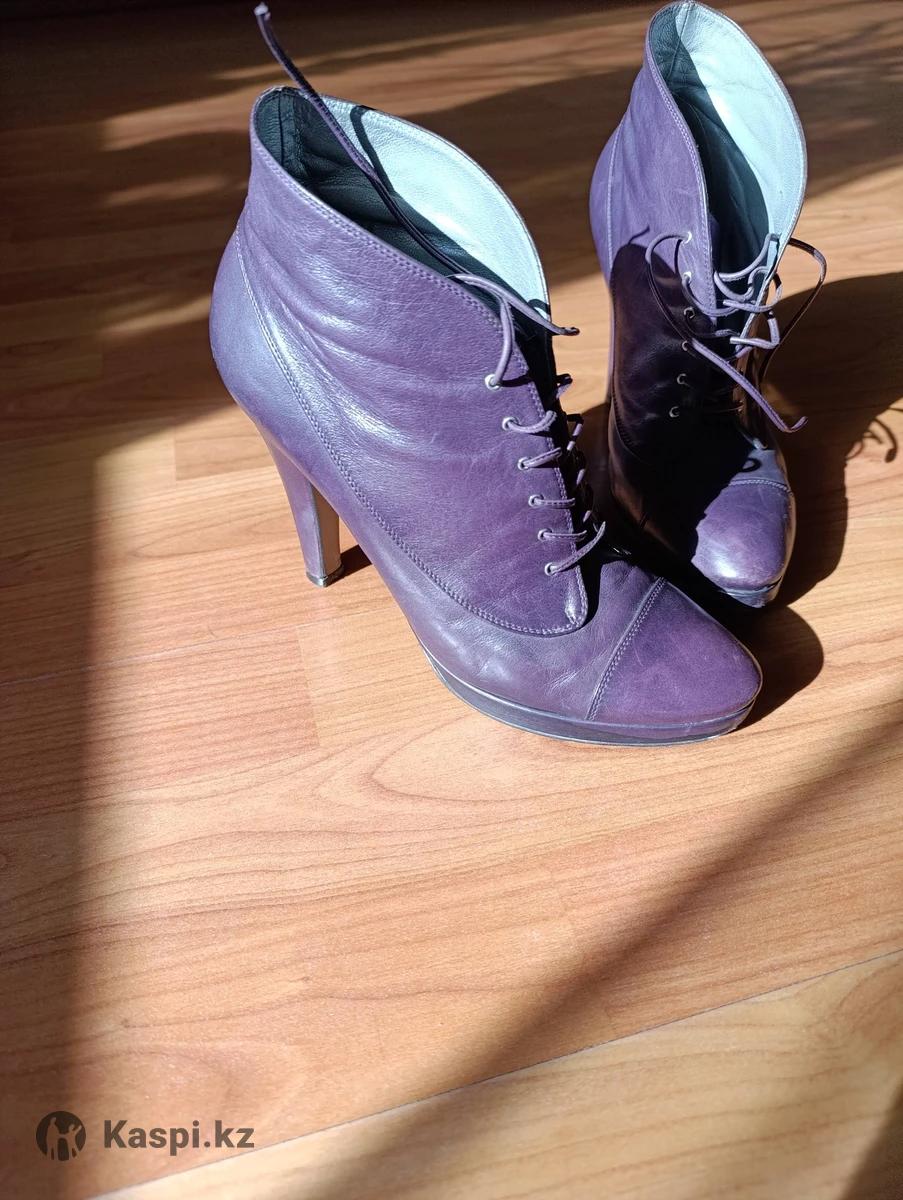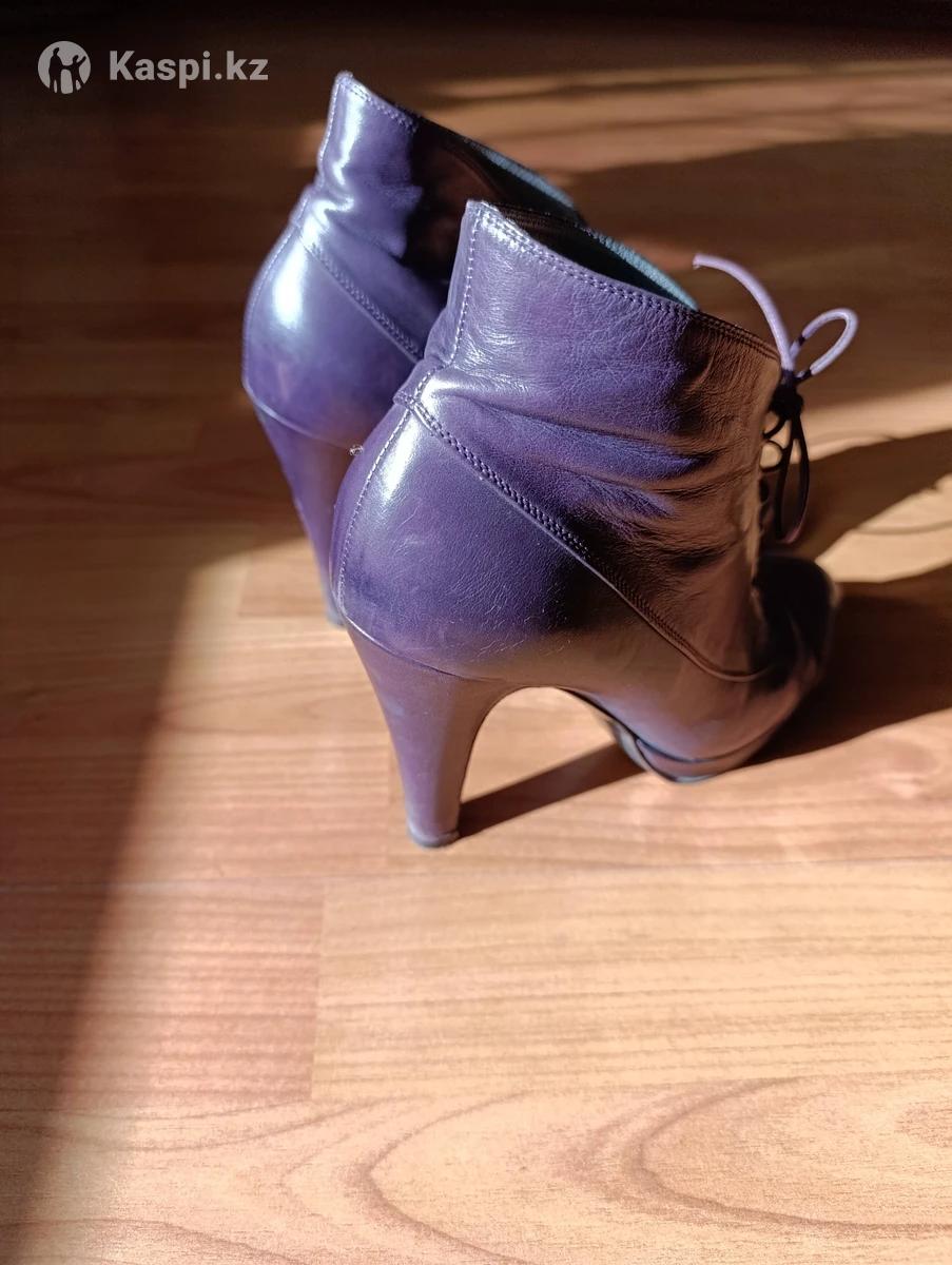Ботильоны , бренд Pollini, мягкая кожа, глубокого фиолетового цвета, кожаный тонкий шнурок, средний устойчивый каблук, удобная посадка ноги..