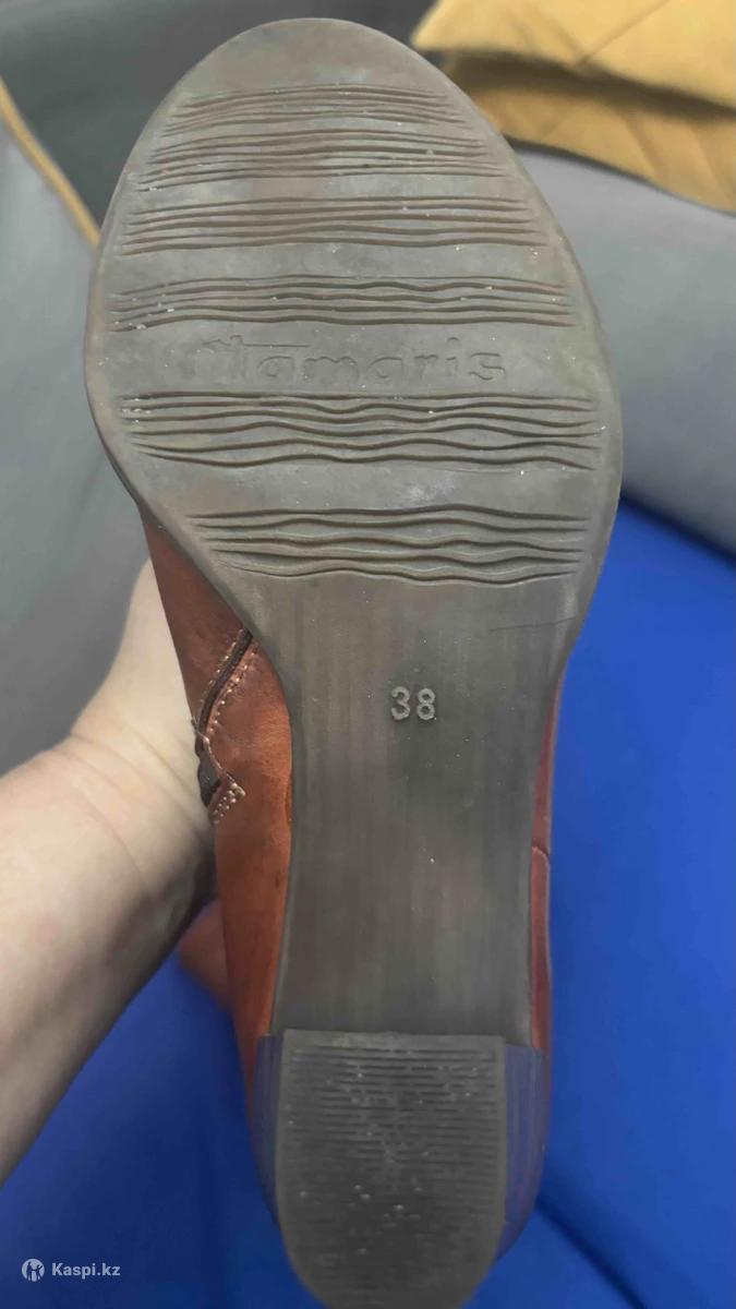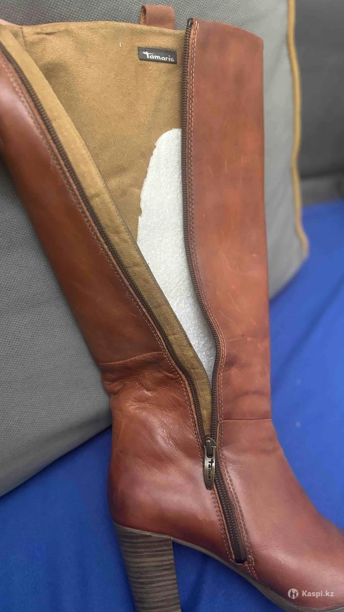Женские кожаные сапоги Tamaris Стильные и удобные сапоги из натуральной кожи красивого коньячно-коричневого оттенка. Классическая модель на устойчивом каблуке — отлично подойдут как на каждый день, так и под деловой или женственный образ. Размер в размер. Цена 20000 тенге. Могу отправить в другой город.