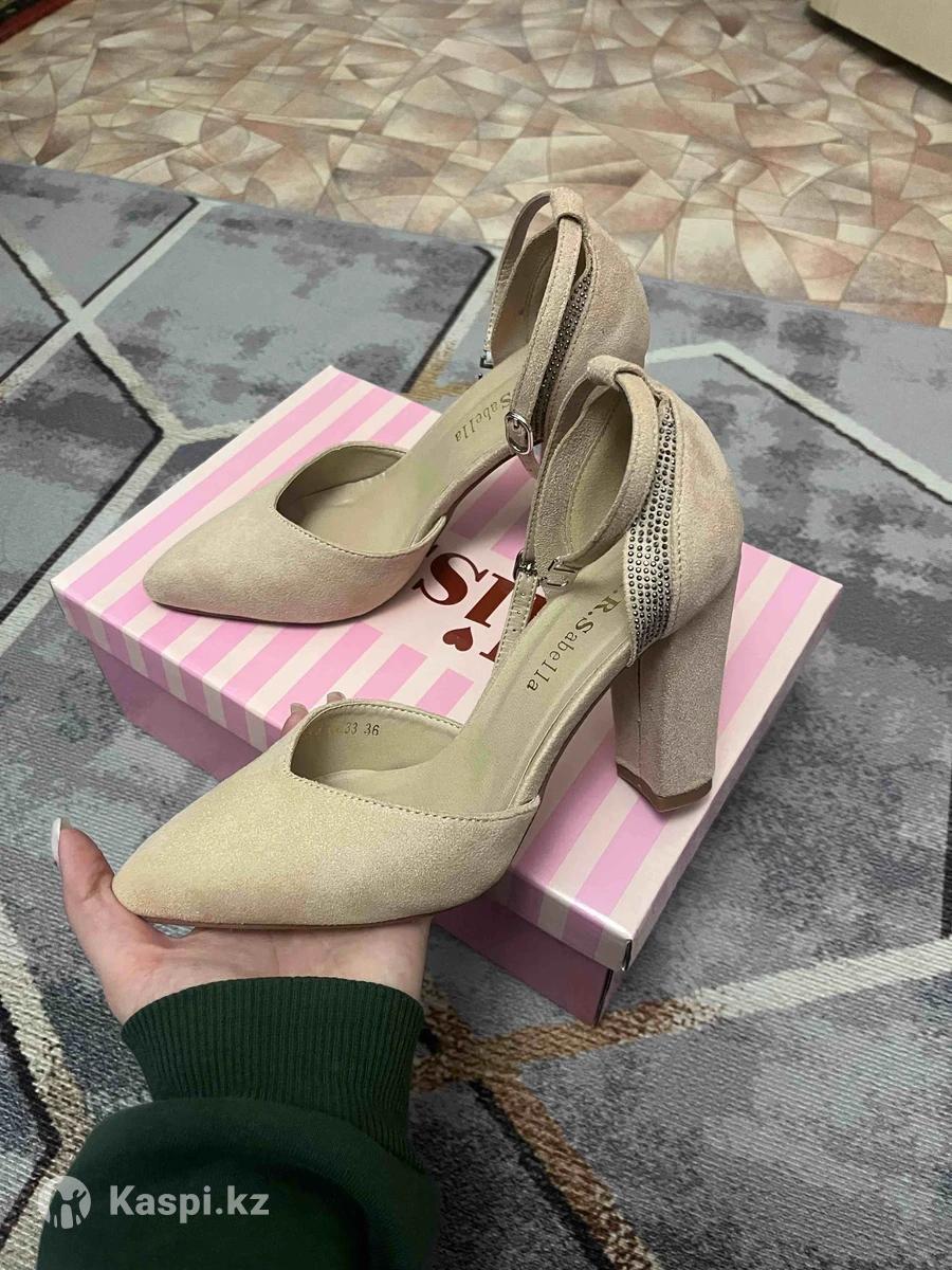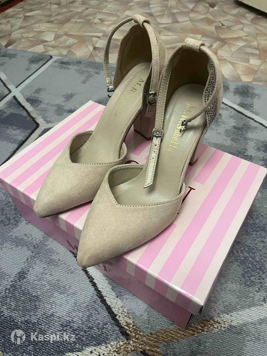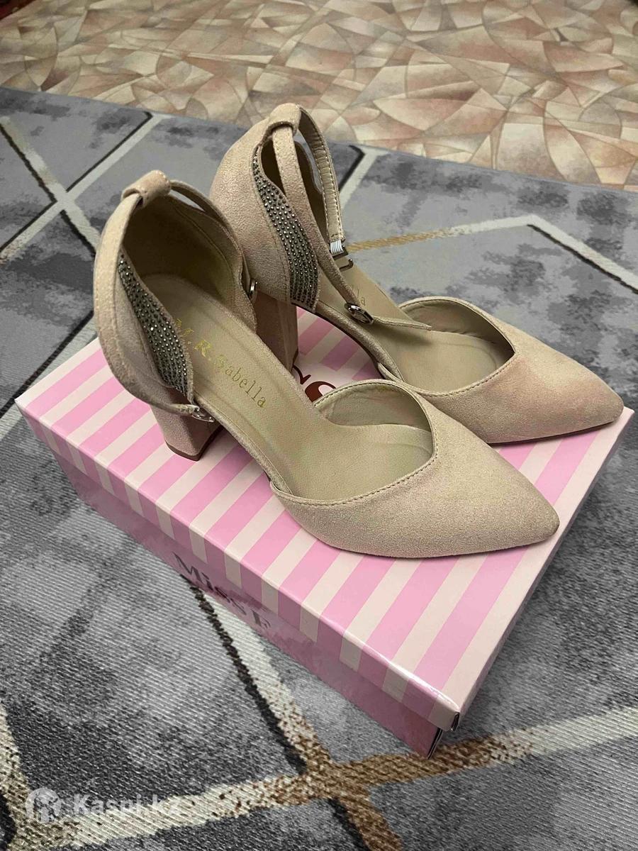 Продам бежевые замшевые туфли на каблуке, ни разу не обувала