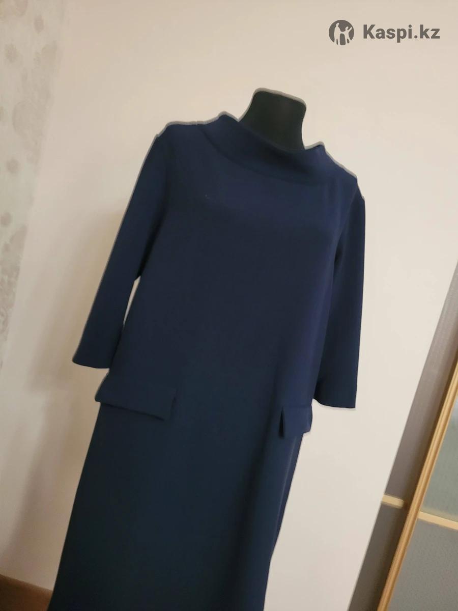 Продам женское платье синего цвета размер 48 б/у в отличном состоянии, состав шерсть и вискоза, ткань джерси, французская длина торг уместен