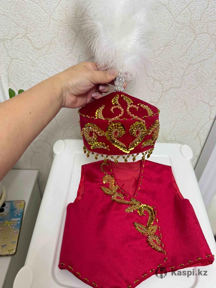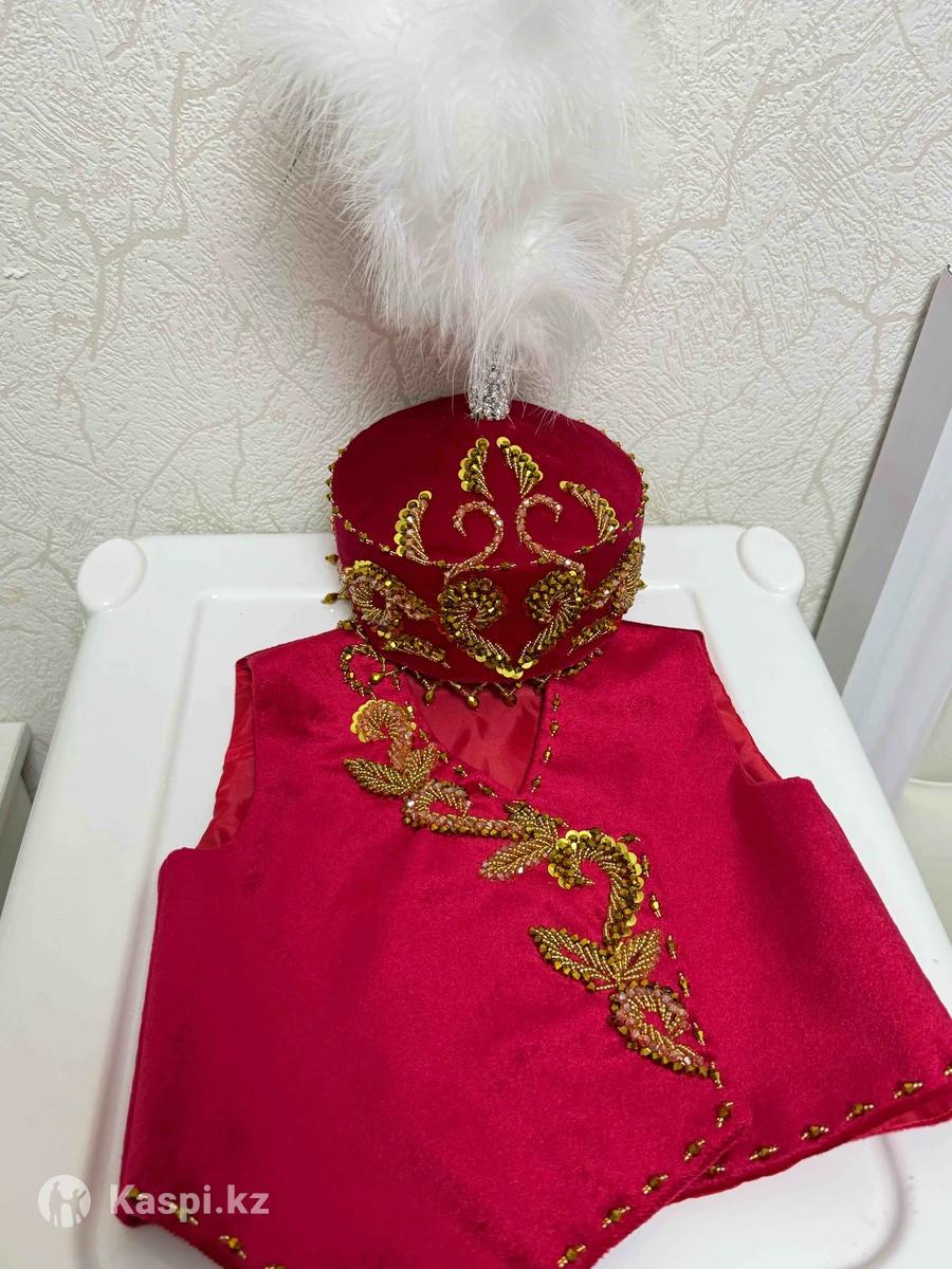 Детский национальный костюм (жилет + головной убор) ручной работы Продается красивый детский комплект в национальном стиле: бархатный жилет и традиционный головной убор с пером. Выполнен в насыщенном красном цвете, украшен золотистой вышивкой и пайетками — выглядит очень нарядно и празднично. ✅ Подойдет для: • праздников и утренников • фотосессий • мероприятий в национальном стиле • подарка ✅ Особенности: • ручная работа • аккуратная вышивка • мягкий и комфортный материал • эффектный внешний вид