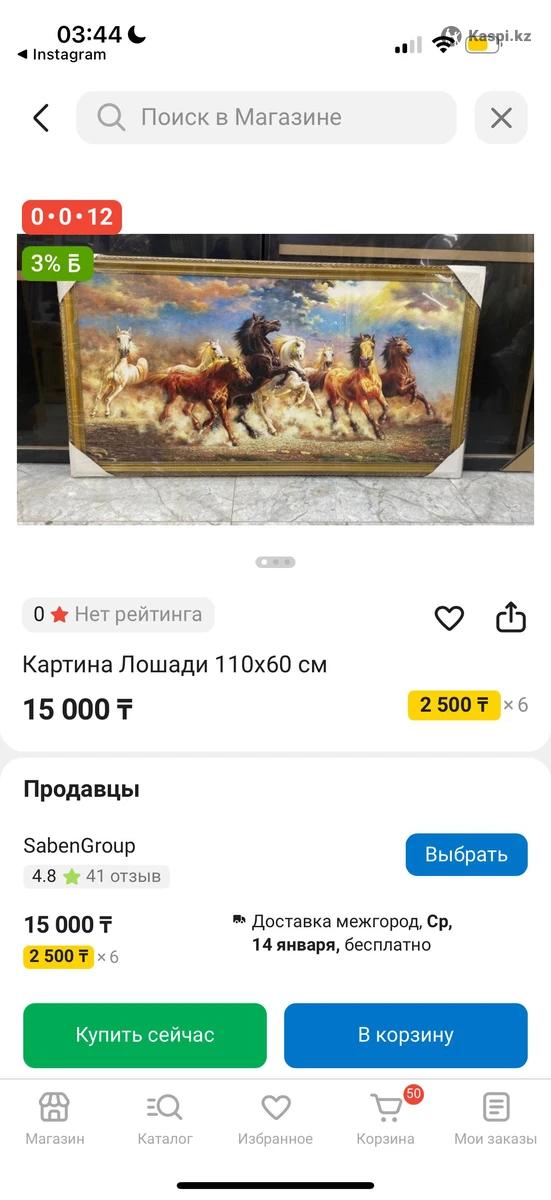 Продам картину, 100на60 в каспи 15 тысяч стоит , продам за 9