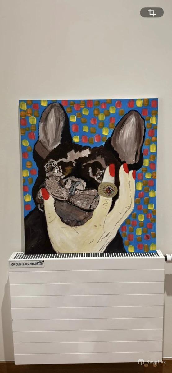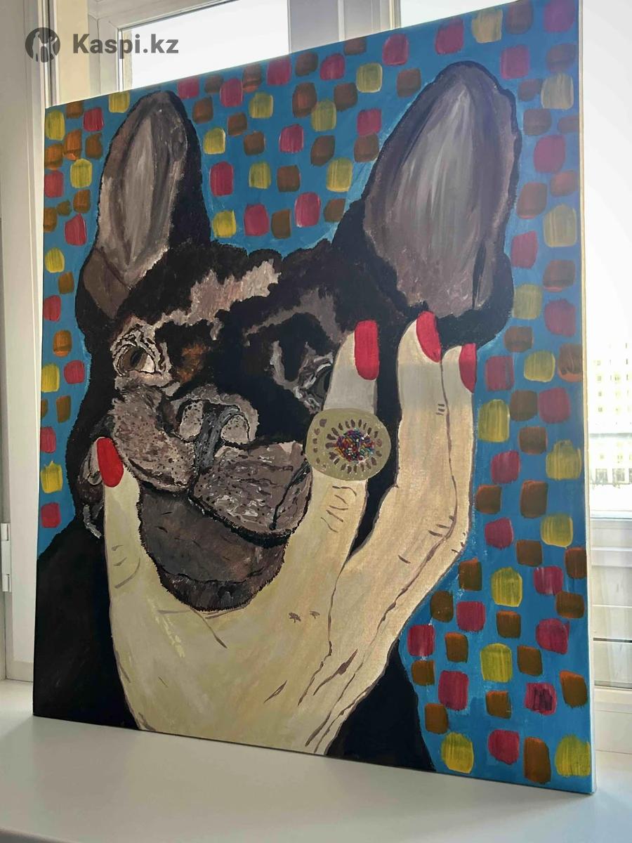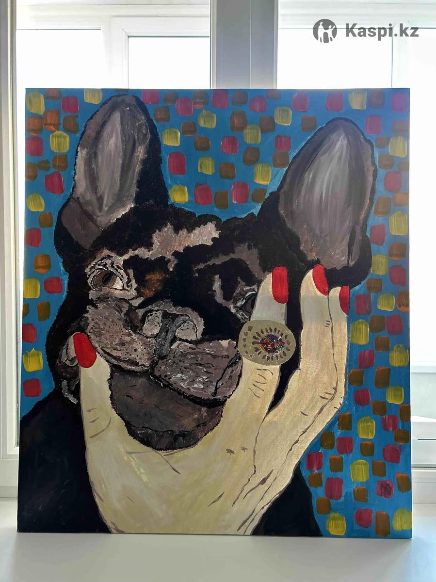 80 × 80 см | Акрил | Холст «Под защитой» Современная интерьерная картина с характером. Контрастный сюжет — французский бульдог в жесте «в ладони» — создаёт эмоциональный центр композиции. Бирюзовый фон с цветными мазками делает работу ярким акцентом в: -минималистичном интерьере -современном ЖК -студии, кабинете, шоуруме Работа притягивает взгляд и отлично работает как центральный арт-объект на светлой стене. Оригинал. 1/1. 100.000 тысяч, торг уместен