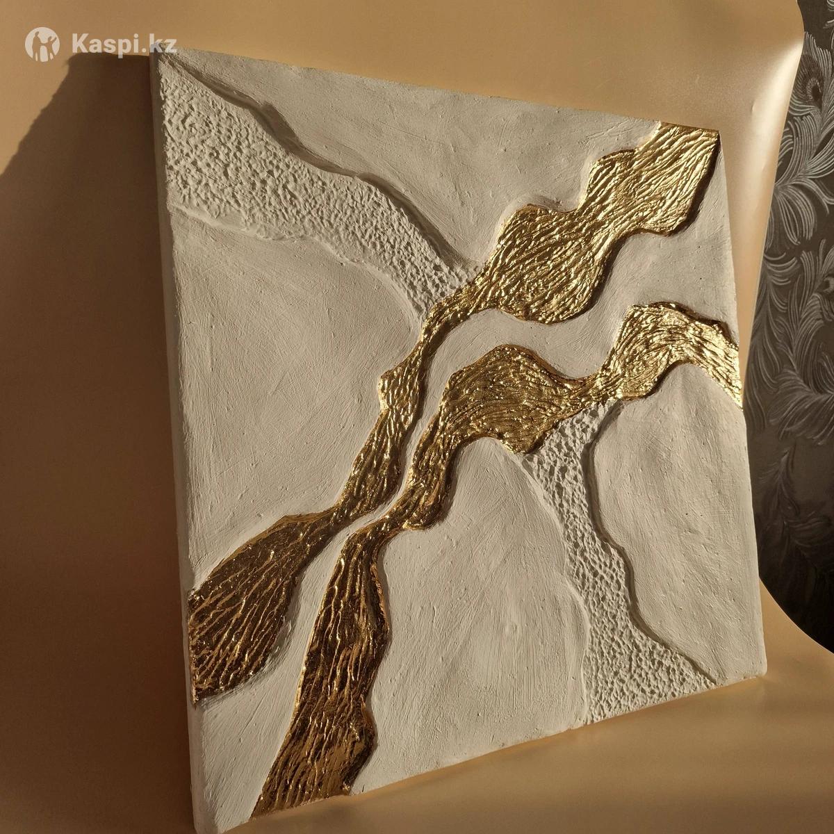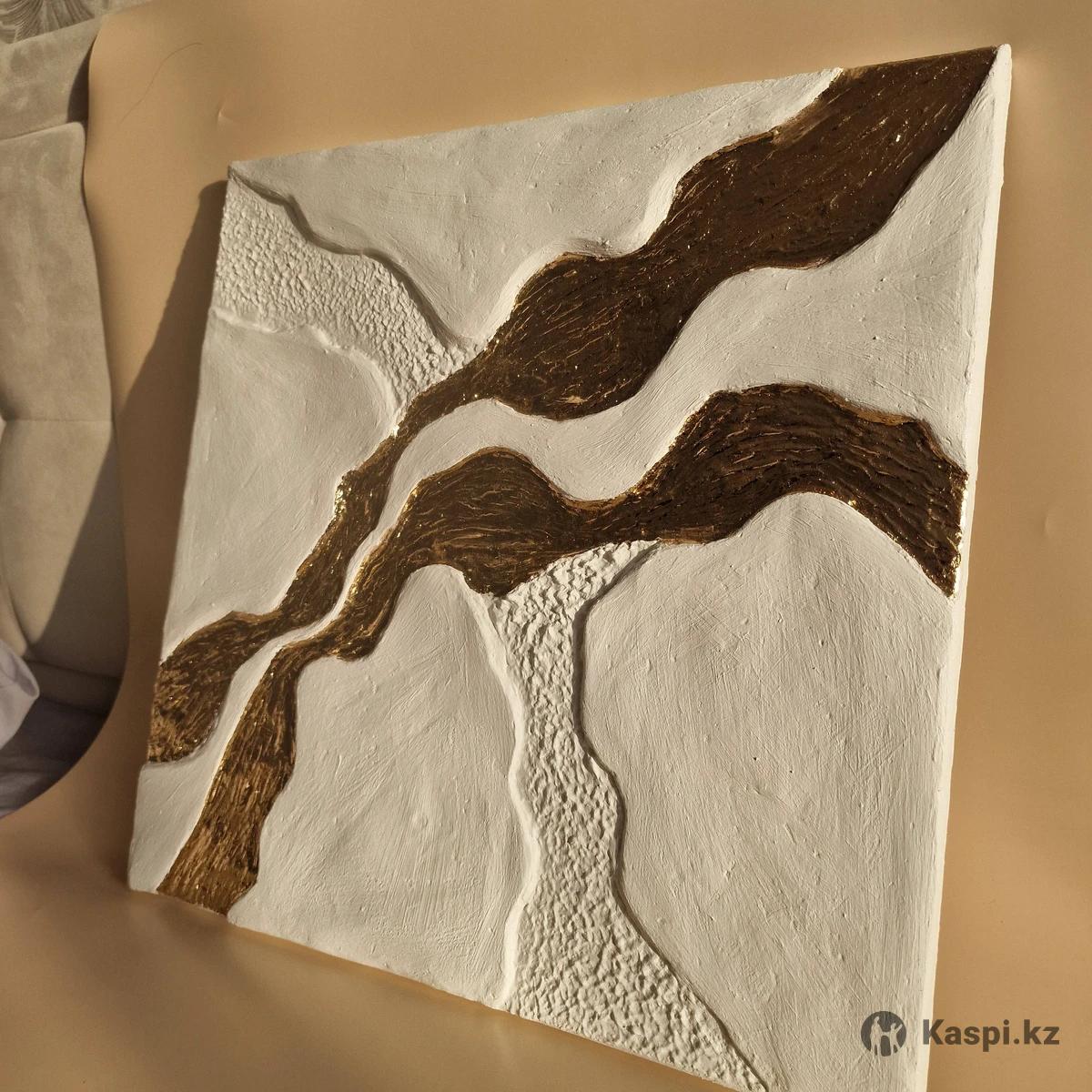 Продам картину размер 5050 Золотые реки. Создана с помощью объемной текстурной пасты, использовано золочение поталью акрил. Торг