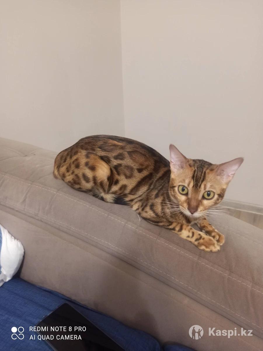 Продам котенка бенгала.ей 7 месяцев.красивая ,игривая ,умная.ест сухой корм и мясо.ходит в лоток с комкующимся наполнителем
