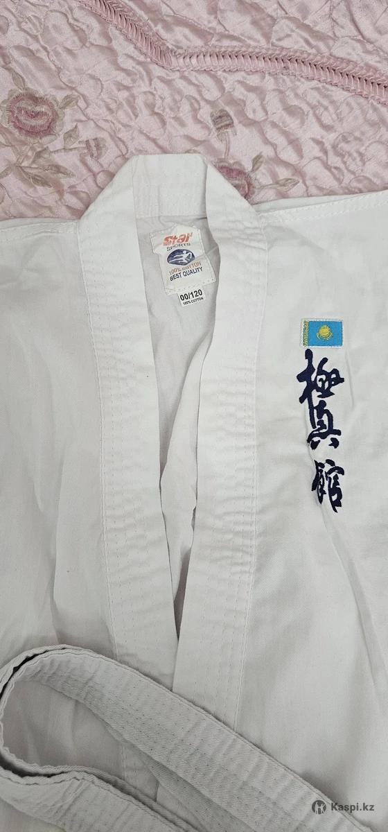 Продам кимоно для карате на мальчика или девочку 3-4 года (120 рост), в отличном состоянии. Хорошая ткань, хб приятная к телу, одевали только 2-3 раза.