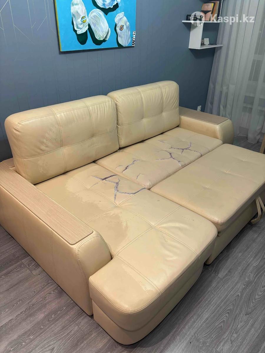 Продаю раскладной кожаный диван. Механизмы, фурнитура, деревянные вставки - все в отличном состоянии и отличного качества. Размеры 170х260. Срочно! Самовывоз Астана.