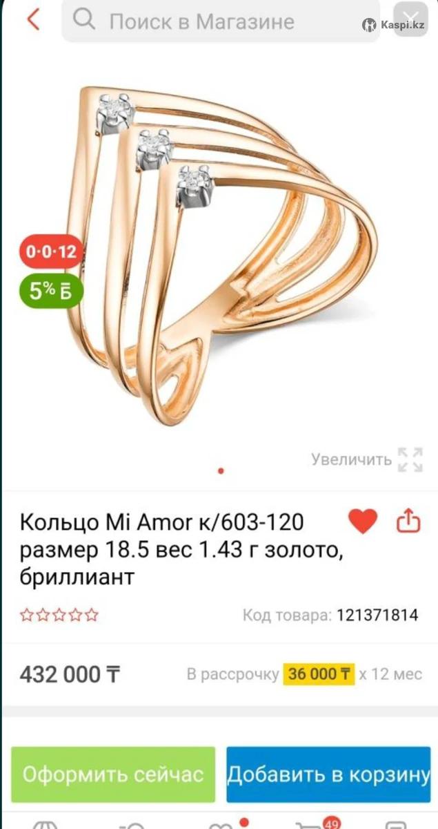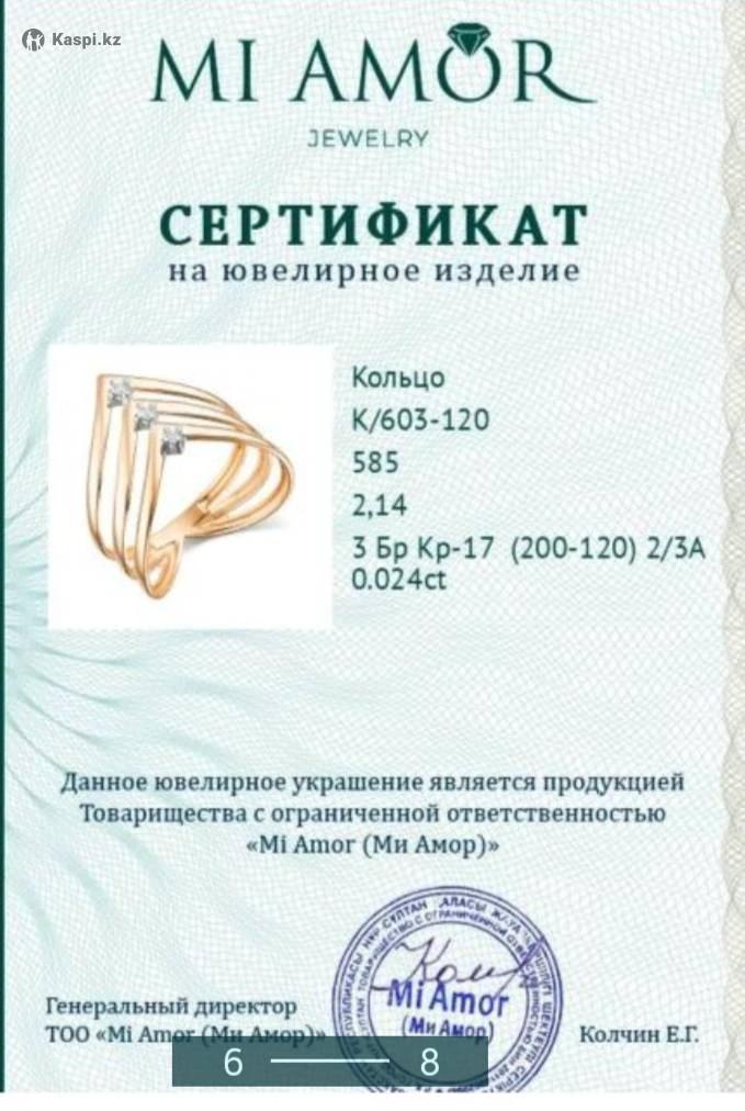 Кольцо новое, не носила. Российское золото, вес 2.14, проба 585, три бриллианта по 0.024 ct, размер 18. В магазине стоит в два раза дороже. За дополнительной информацией пишите в по указанному номеру.