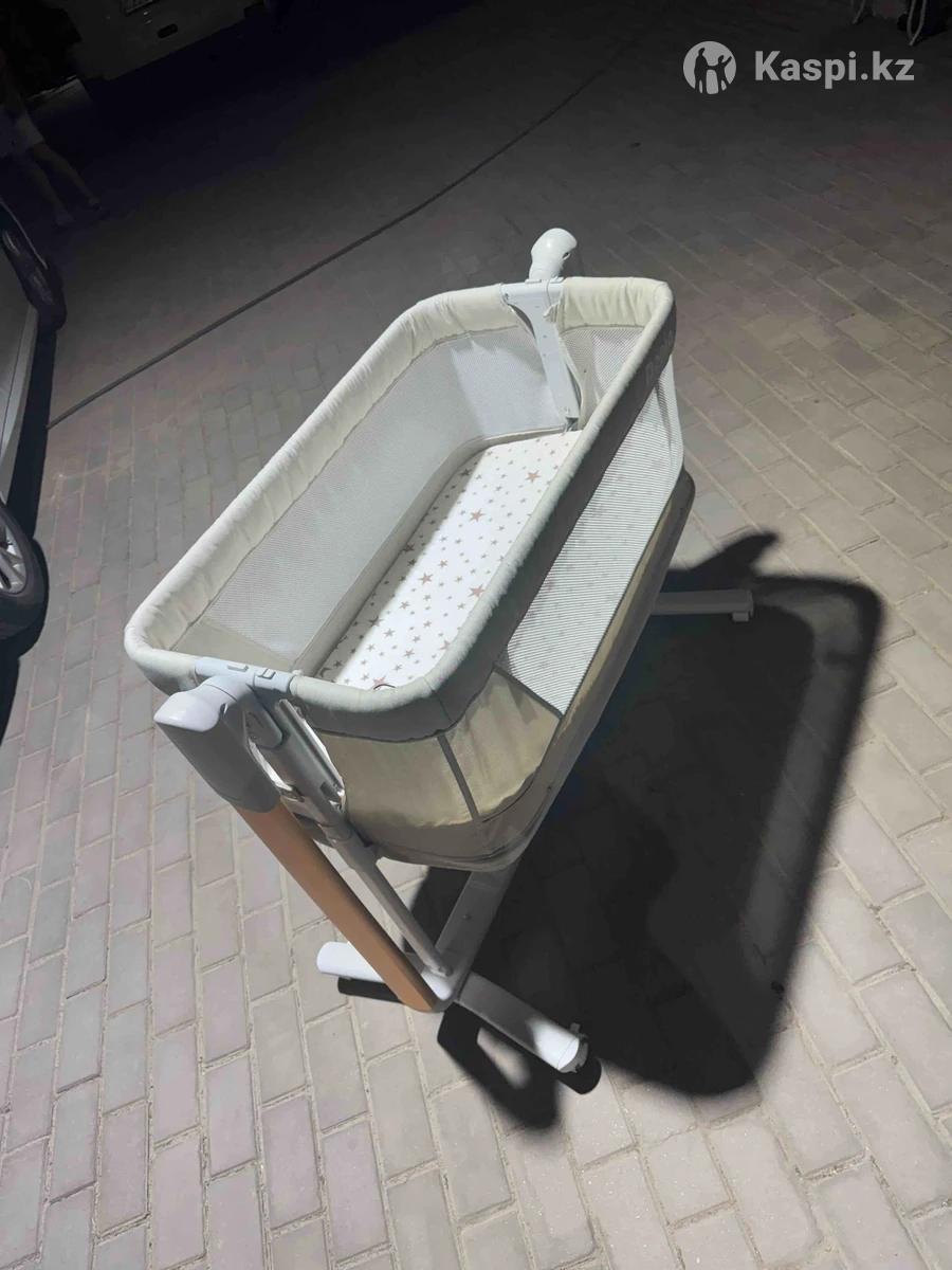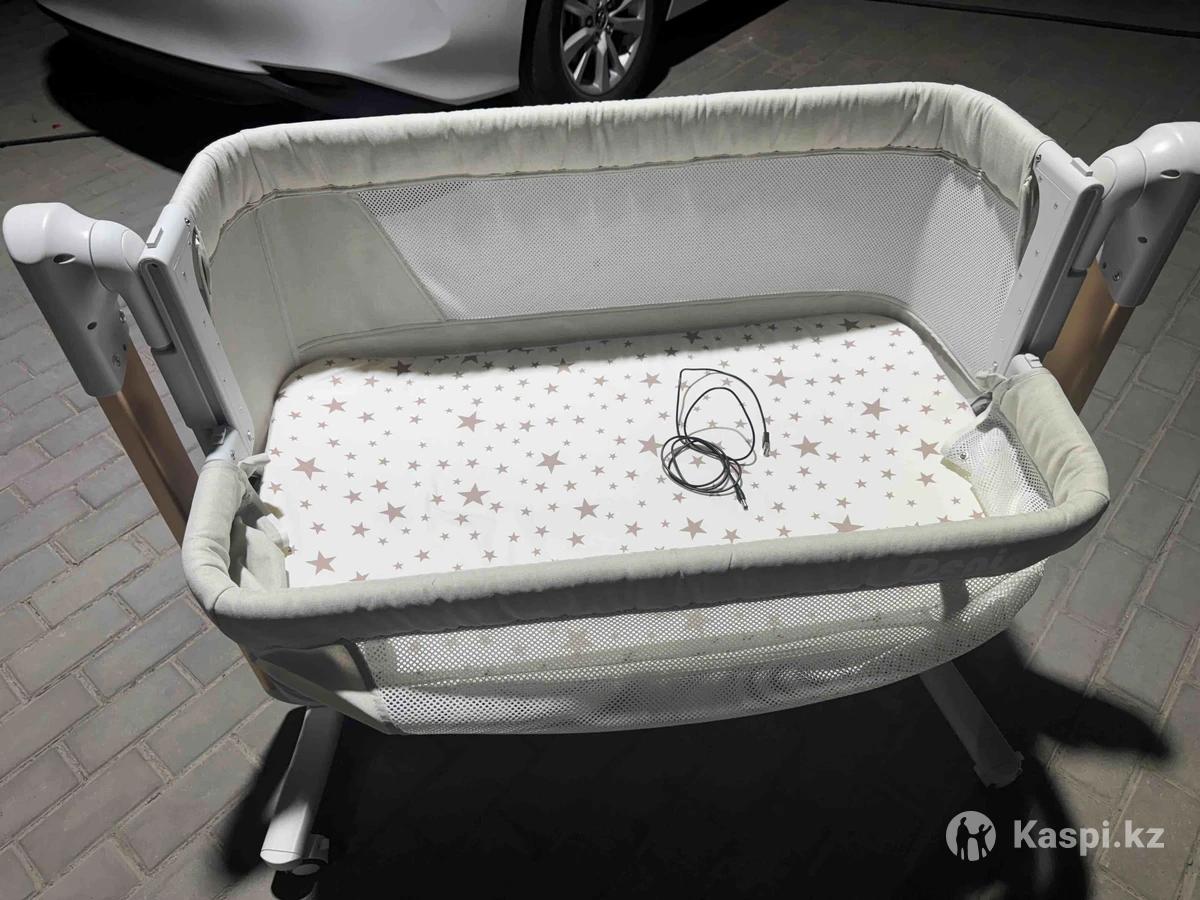 Продам колыбель-манеж, с откидным бортом и регулировкой высоты. Есть электроукачивание, пульт, музыка Все работает, состояние нового