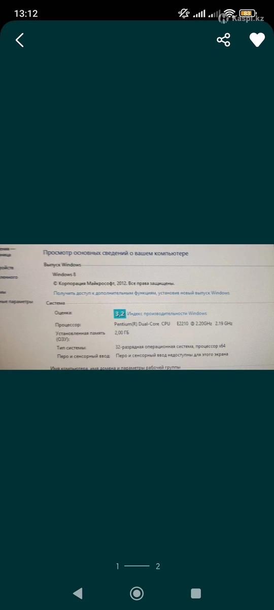 Продам компьютер процессор Pentium dual-core E2210 2.20ghz, ОЗУ 2Gb, HDD 320gb в хорошем состоянии Windows 8.Оффисные программы работают, интернет подключаеться.Все в комплекте:Системный блок,монитор ЖК(плоский),клавиатура,мышь,колонки.Цена:20000.торг.Самовывоз центр