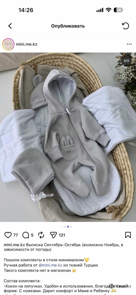 Продам конверт на выписку и на прогулку «Айналайын» от Мини Ми в идеальном состоянии. В комплект входит кокон, шапочка и комбинезон в сером цвете. Подходит от +5 до +20. В весеннюю выписку самый раз👍