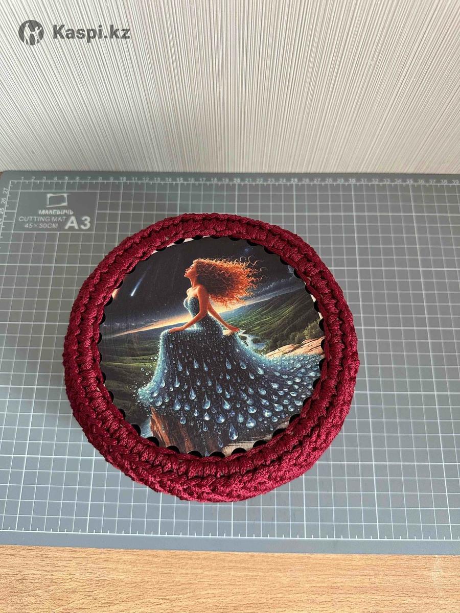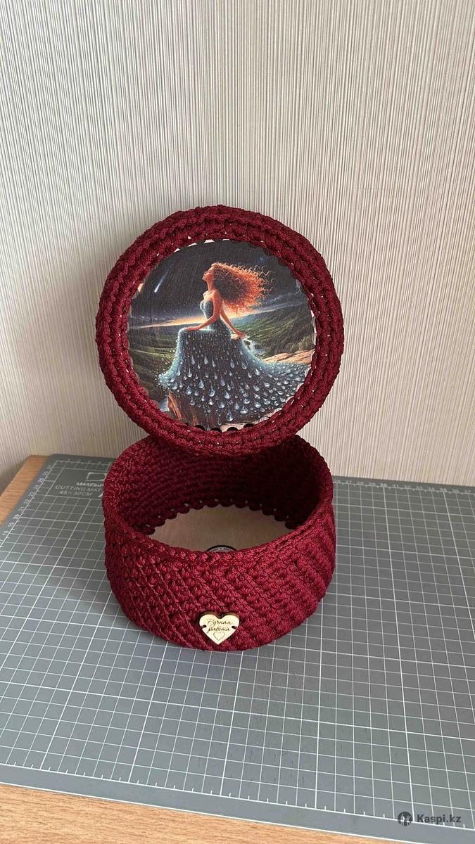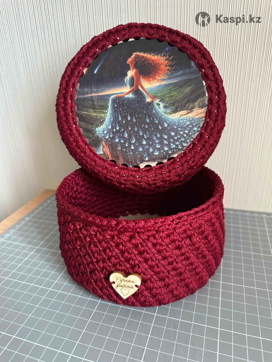 Корзинка ручной работы для браслетов, бус, колец и другой мелочи. Корзинка сделана из полиэфирного шнура и деревянных донышек