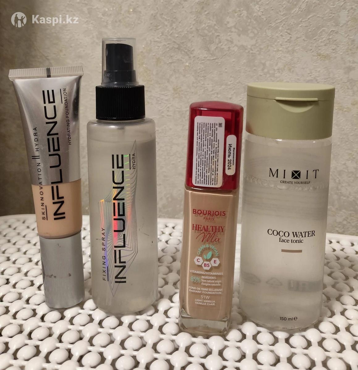 Продам косметику срочно, фиксатор и тональный крем тон 03 от influence Тоник от mixit Тональный крем от bourjois Оригинал Почти новые , пару раз использовала Отдам все вместе за 13000тг