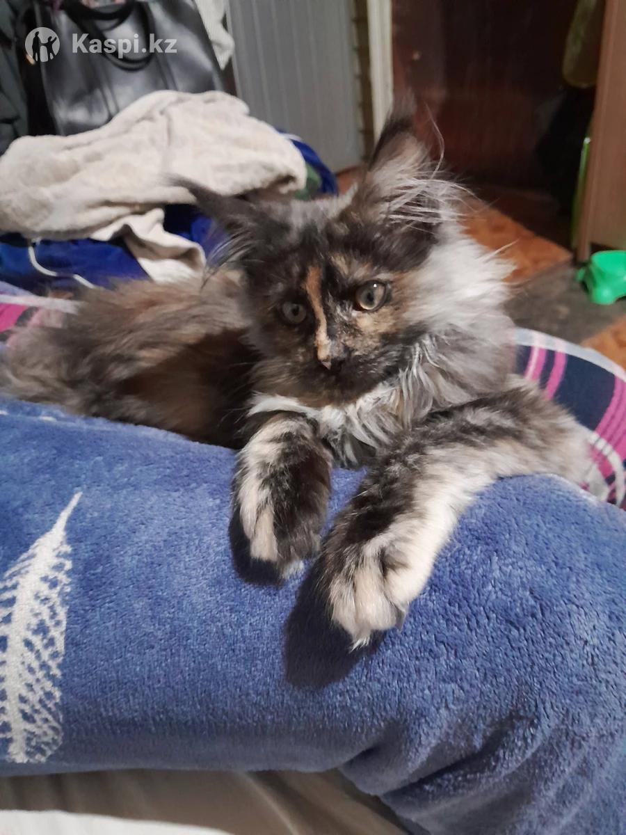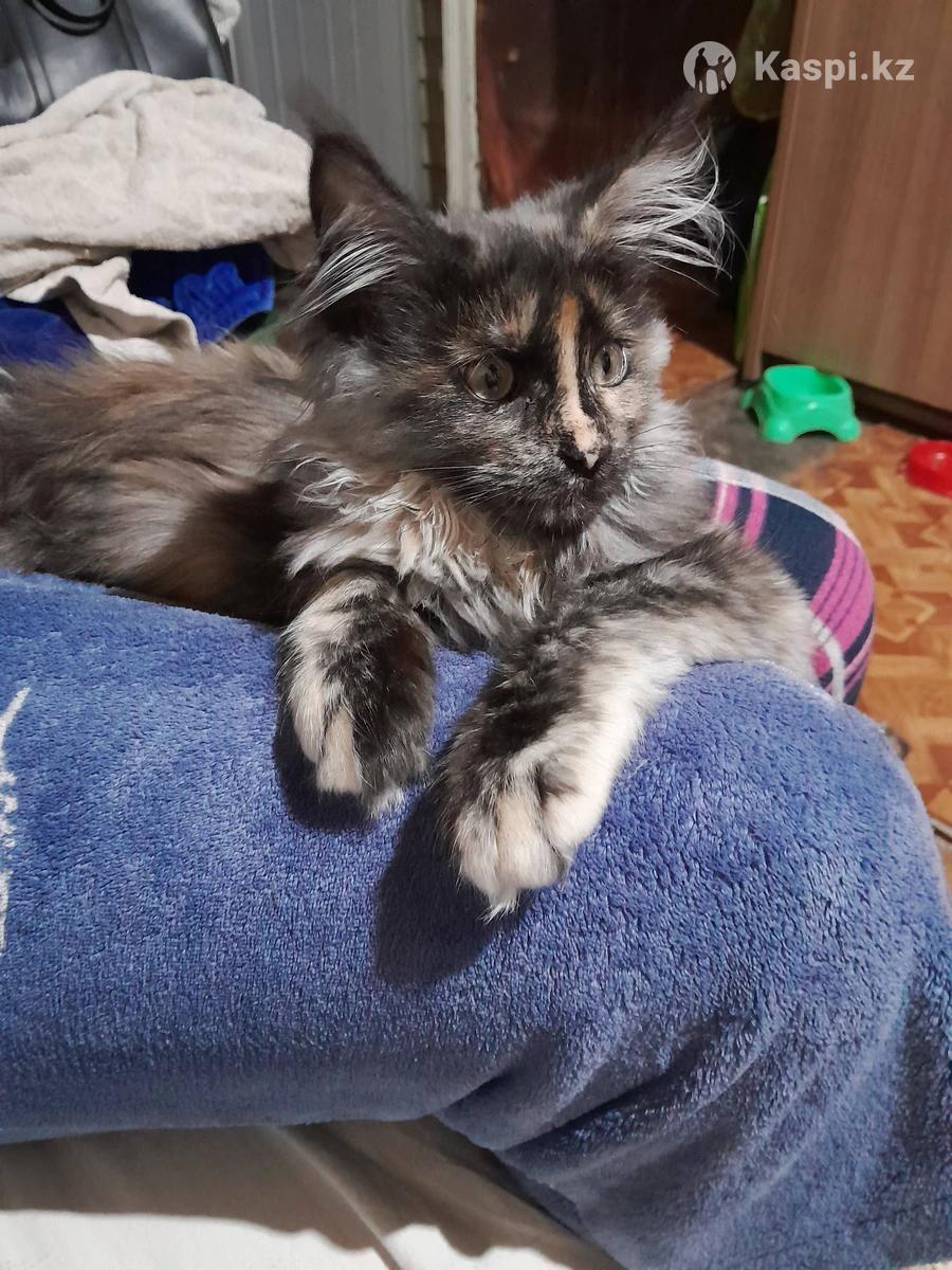 Продам кошечку,4 месяца ,порода мейн кун. С метриками.