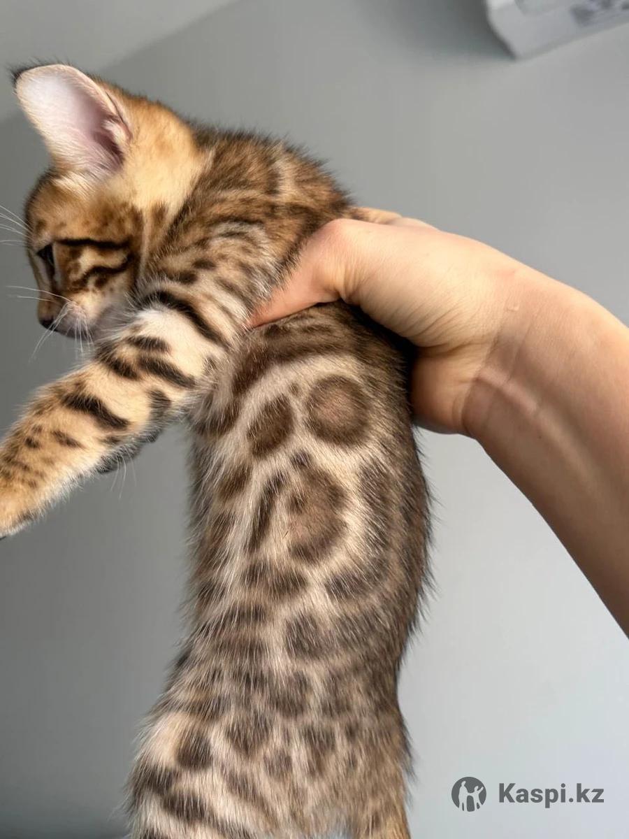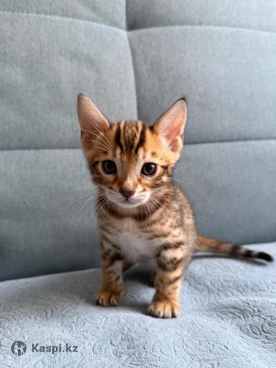 Открыта бронь на продажу чистокровного бенгальского мальчика окраса Браун-золото. Котенок родился 10/01/26 Здоров и активен. Растет в домашних условиях. Чистая генетика. Есть родословная родителей. Самостоятельно начал кушать и ходить в лоток. По вопросам брони пишите на г.Алматы