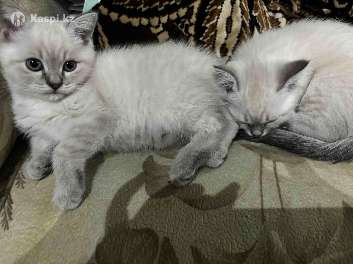 Два котенка — мальчик и девочка, 2 месяца. Ласковые, игривые, приучены к лотку и когтеточке. Окрас Blue Point, яркие голубые глазки — очень эффектные! Папа — чистокровный британец голубого окраса. Мама — наполовину британка, спокойная и ласковая. Котята растут в заботе, здоровые и активные. Отлично подойдут для семьи. Цена: 15 000 тг