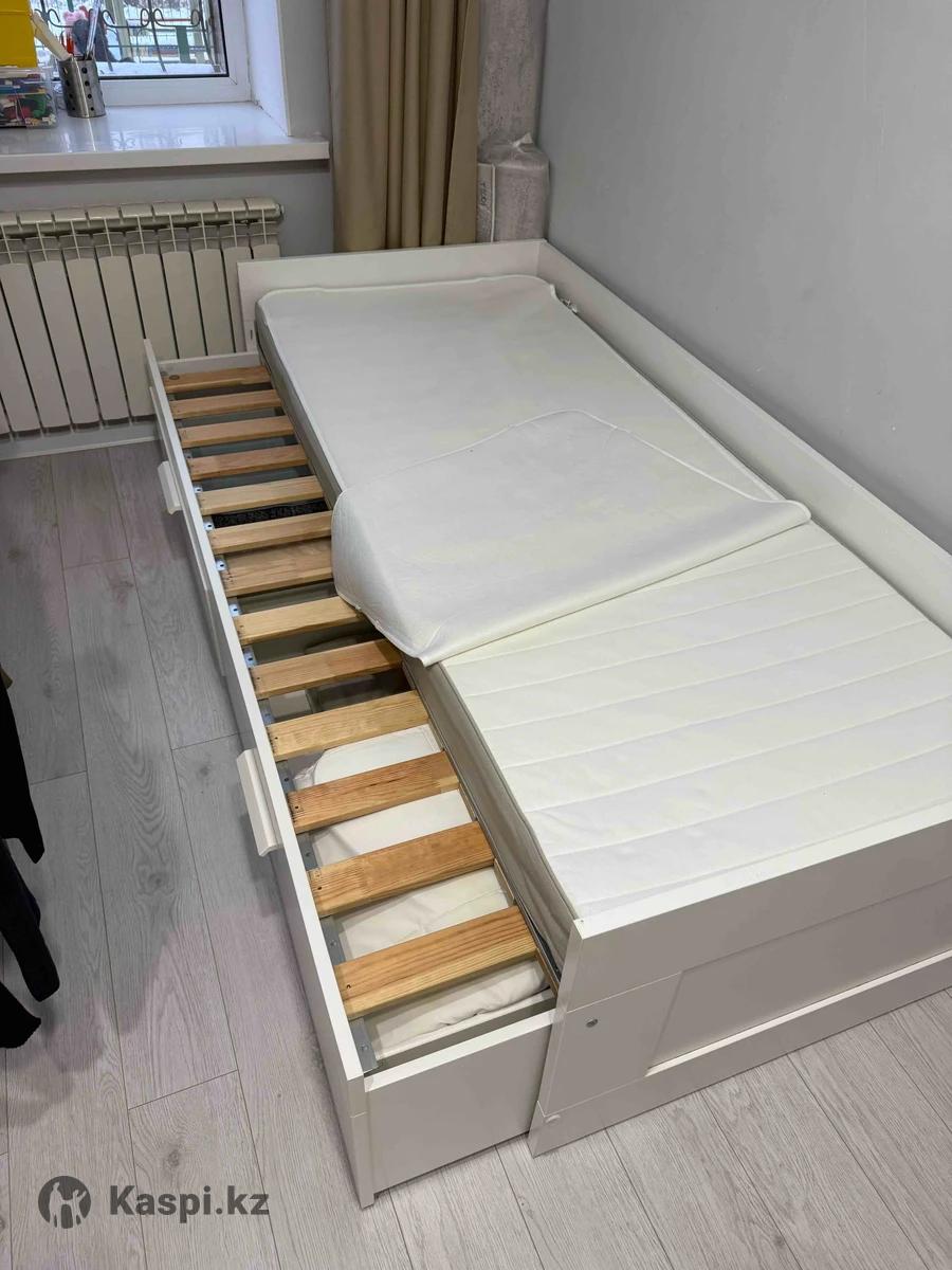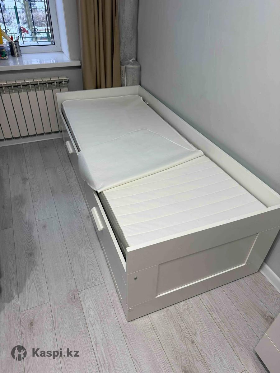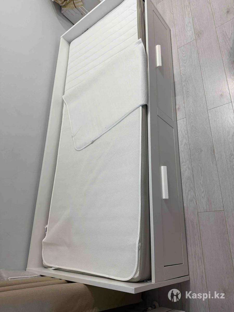 Кровать Бримнес Икеа оригинал! Состояние идеальное. Размер 80 на 200. Матрас в подарок. Новая в объявление стоит 430.000 Раз двигается в двух спальную. Купили стоит ребенок не спал. Я матрас покупала новый за 150.000