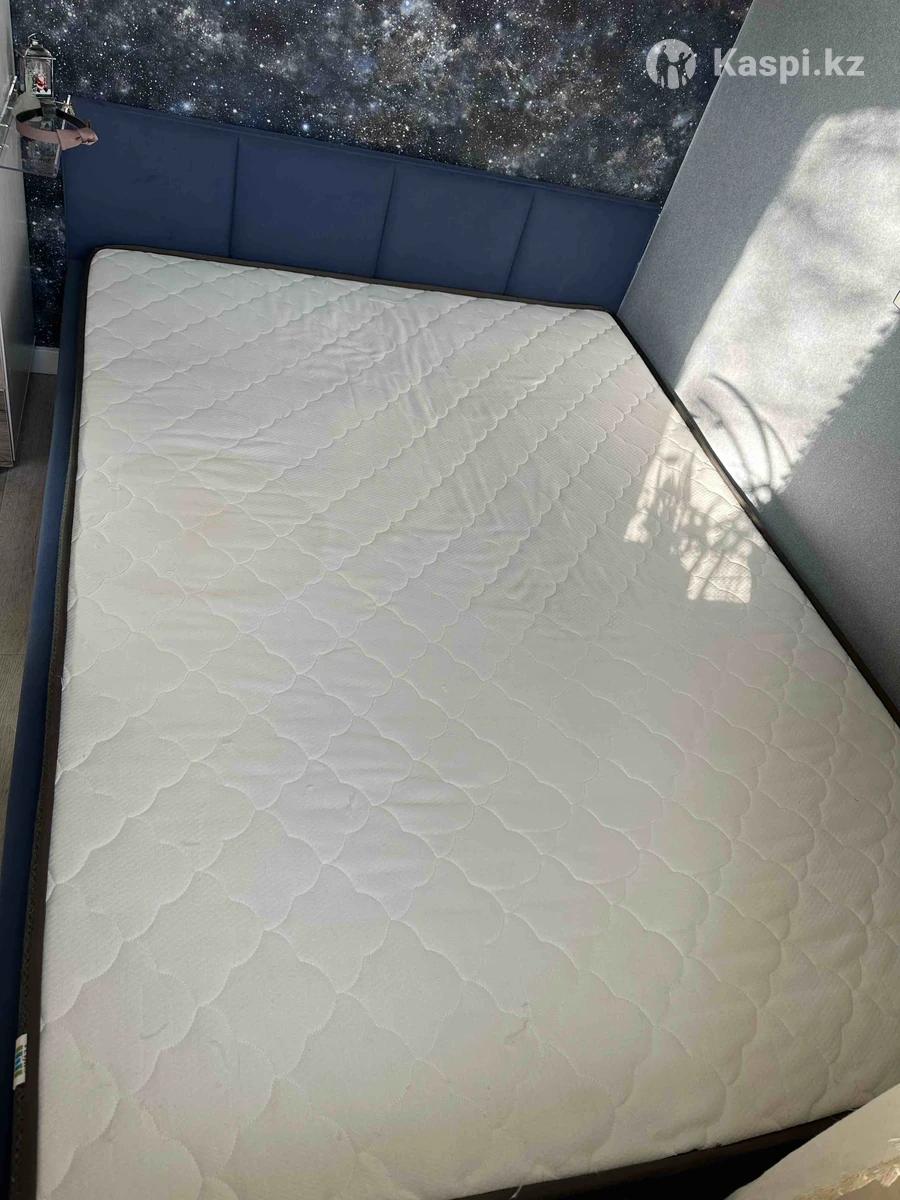 Продам кровать 1500х2100х350 (высота подголовника 700) , спальное место 1400х2000, с ортопедическим основанием, есть подъемный механизм и место для хранения. Матрац ортопедический в комплекте. Цвет синий. Самовывоз.