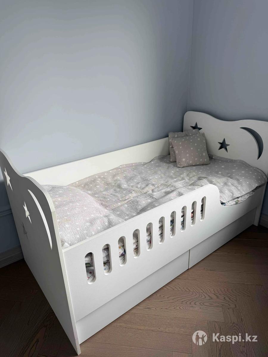 Продам кровать белого цвета в хорошем состоянии с бортиком. Делали на заказ. Продается без матраса. Размер