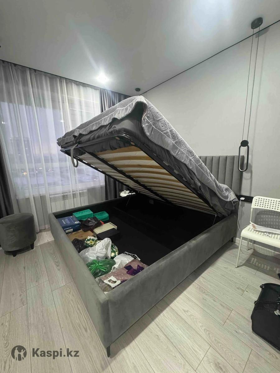 Продам двуспальную кровать с подъёмным механизмом и большим местом для хранения. Состояние хорошее, аккуратно пользовались. Цвет серый, мягкое изголовье, современный дизайн. Очень удобная и вместительная. 180200 Подарок пуфик