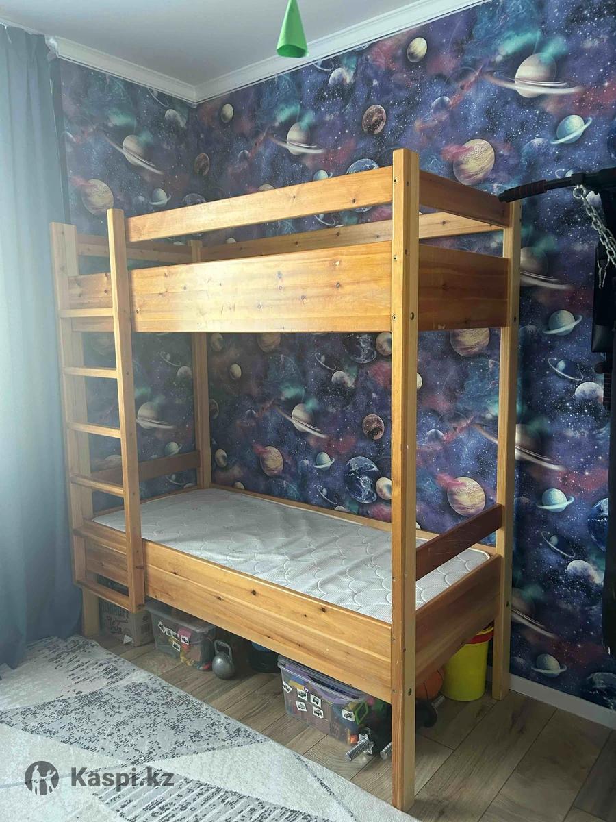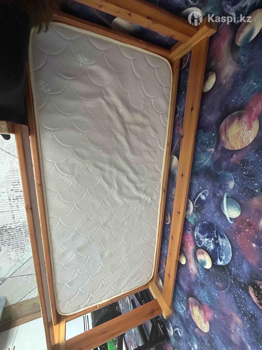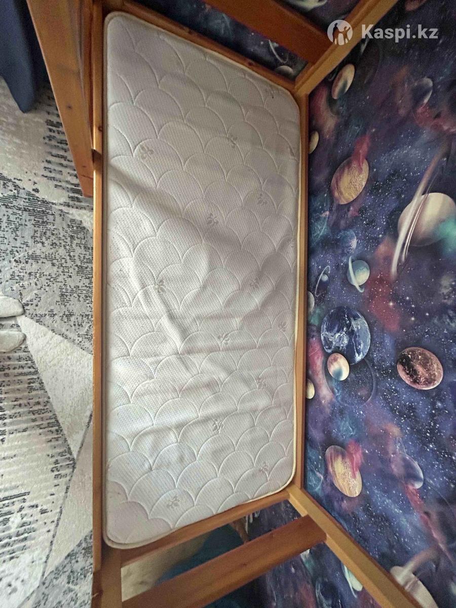 Кровать двухъярусная. Размер спального места 70х170 Размер кровати 78х175 Матрас в комплекте ортопедический детский до 80 кг на спальное место. В хорошем состоянии массив сосны, при желании можно перекрасить в любой цвет. На первом ярусе есть съемные перекладины.