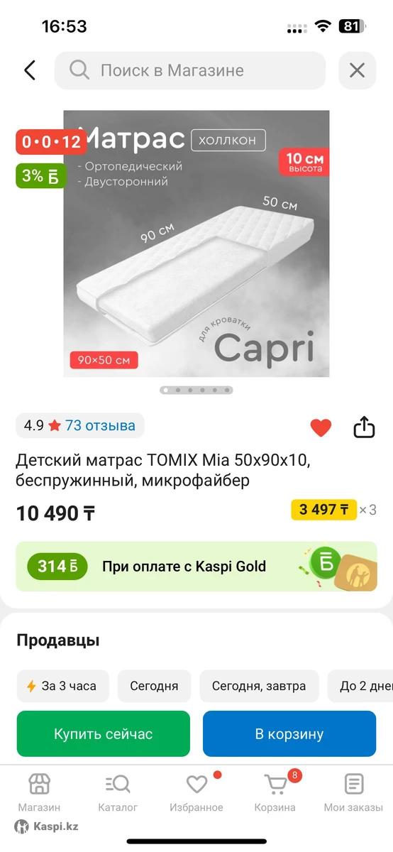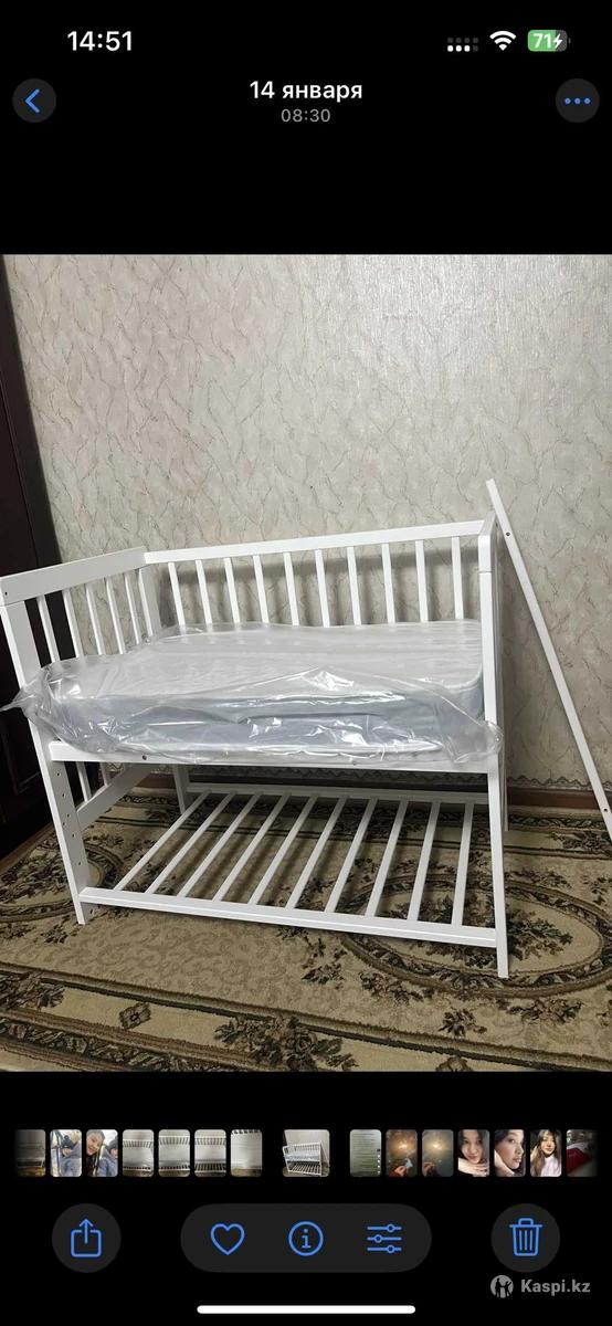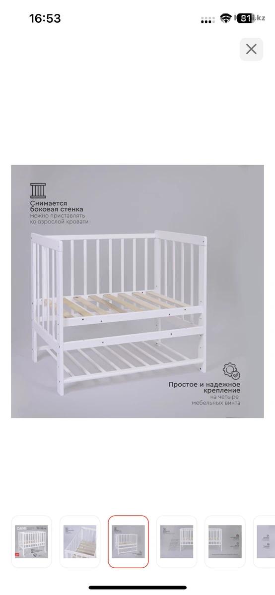 Продам кроватку tomix 9050 + матрас tomix. Новый, не пользовались особо так как малыш спал с нами в итоге. Брали в каспи, качество отличное. Можно использовать как приставную к своей кровати, либо отдельно. В каспи кроватка стоит 50к, матрас 10к. Так же есть бортики на кроватку, покупала на вайлдберриз. Если нужно могу отдать 2 простыни на резинке для матраса, тоже не пользовались. Отдам за 40, адекватный торг уместен.