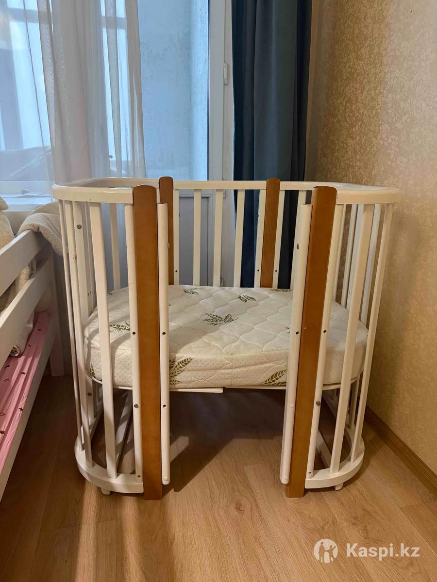 Продам детскую кроватку Есть к нему маятник, два матраса, кроватка расширяется. Имеются колесики. Можно борты закрыть со всех сторон или оставить приставной По состоянию хорошая, уточнять по телефону. Живем на левом берегу.