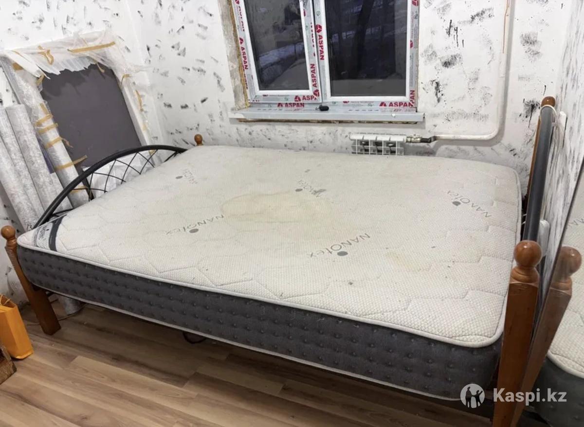 Продам кровать с матрасом, на матрас разлили сок, с другой стороны порван Основа кровати метал, деревянные ножки, разбирается и собирается 2на2, двух спалка