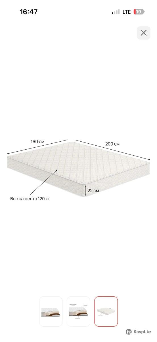 Продам кровать с матрасом б/у размер 160/200 район 10 поликлиники. ЖК Акерке. Самовывоз. Цена 10000тг. Матрас ортопедический, пользовались только год.