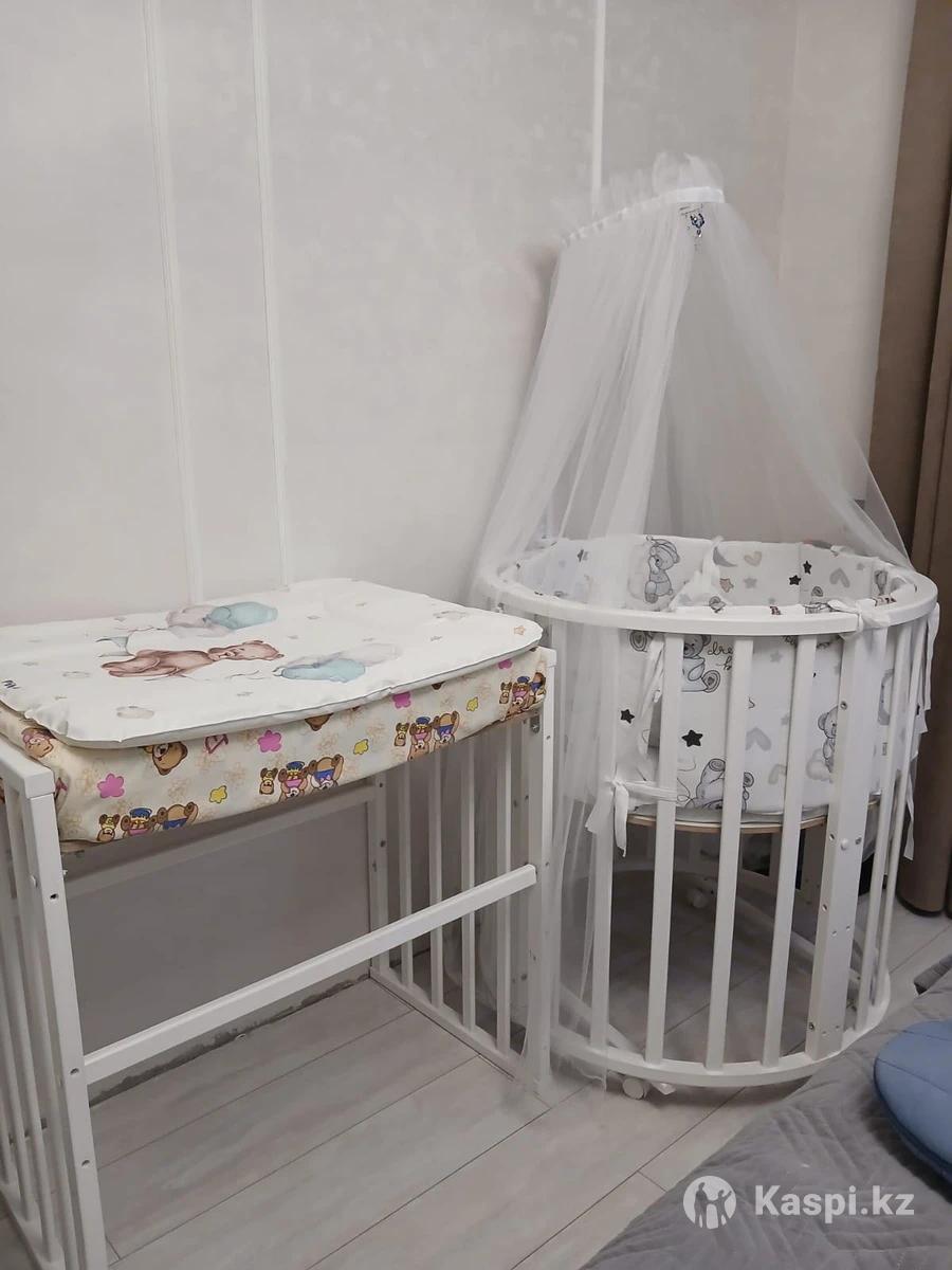 Продам кроватку трансформер от фирмы Newborn в идеале,бортики,матрас овальный круглый,балдахин всё в комплекте,конверт на выписку новый,всё входит в стоимость.