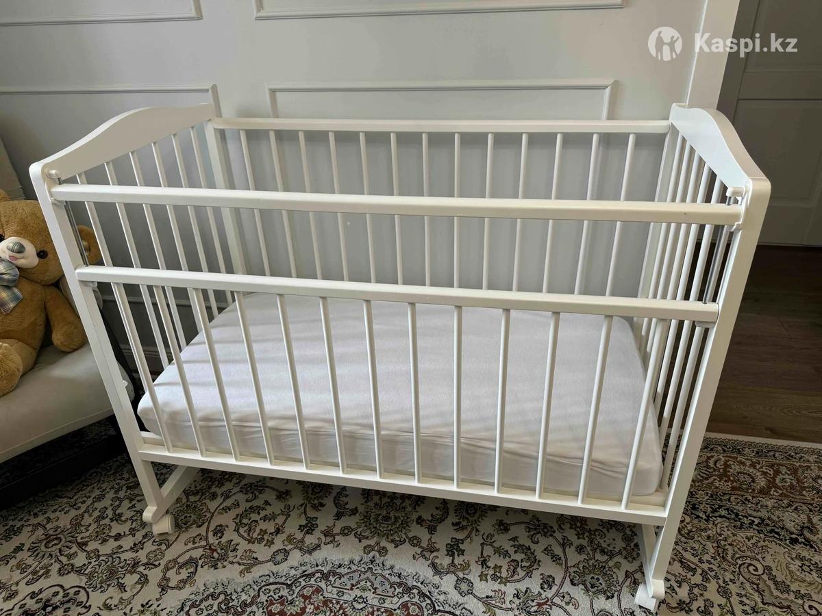Детская кровать манеж Tomix Julia белая из натурального дерева с регулируемой высотой на колесиках, которые можно заблокировать или снять, если снимаете то кроватку можно качать. Продаю в комплекте с ортопедическим матрасом и бортики в подарок