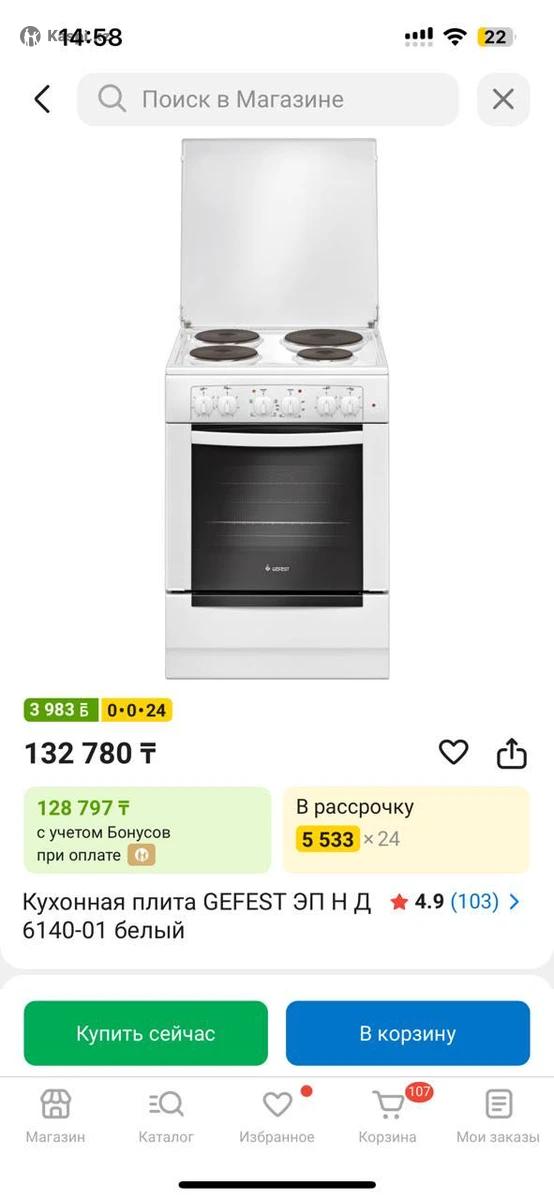 Продам электрическую кухонную плиту GEFEST с духовкой Продаётся электрическая кухонная плита GEFEST с духовкой в отличном состоянии. Пользовались всего 6 месяцев, состояние почти как новое. Работает идеально, без поломок и дефектов. Купили на Каспии за 132 тыс тг. Плита чистая и ухоженная, использовалась аккуратно. Духовка работает отлично, подходит для выпечки и приготовления разных блюд. ✅ Электрическая плита ✅ Есть духовка ✅ Всё полностью исправно ✅ Состояние почти новое Причина продажи: купили новую плиту под кухонную мебель, так как эта не подошла по размеру/дизайну. Отличный вариант для квартиры, дома или дачи. 📍 Самовывоз 💬 Пишите или звоните Цена: 75 тыс тг