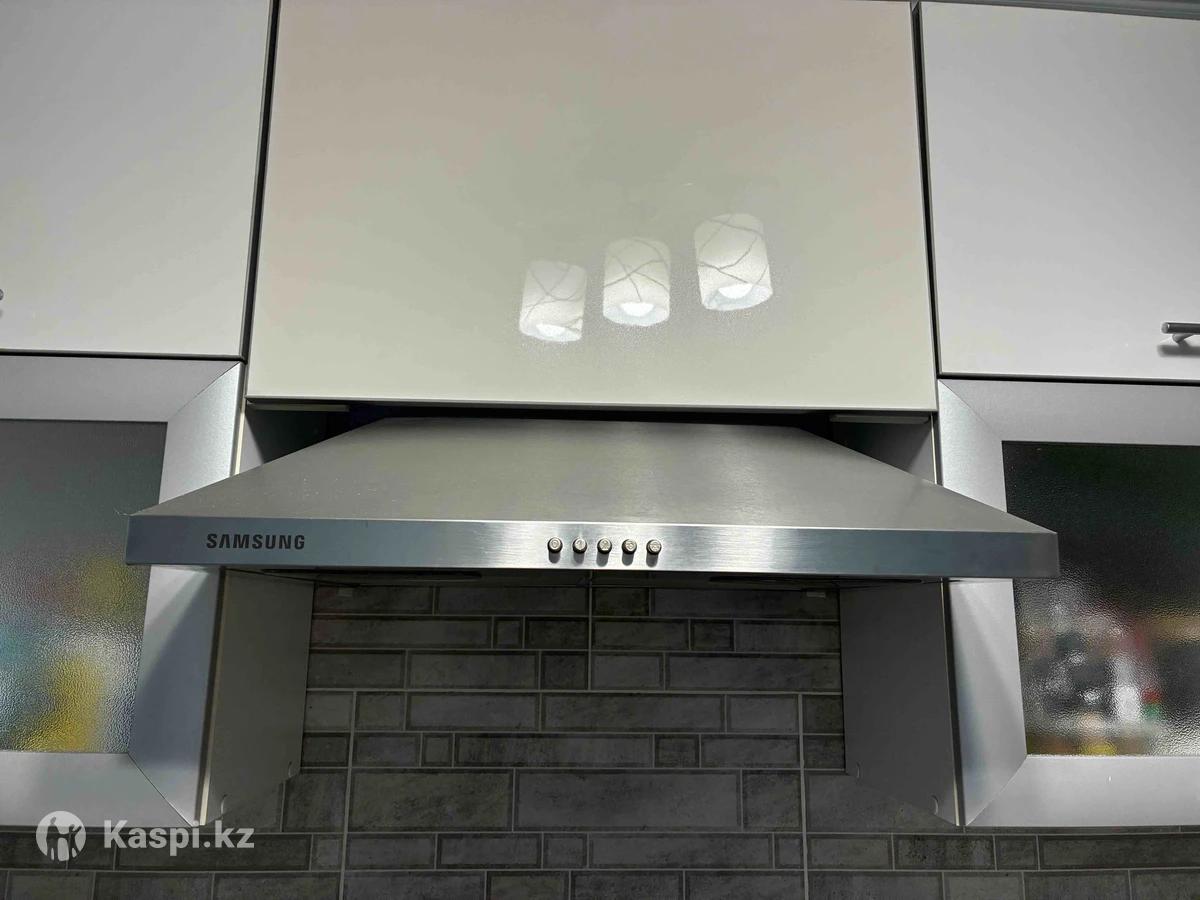 Продам кухонный гарнитур, длина 2700мм, угол 1200мм. В хорошем состоянии, очень вместительный, большие шкафы. Материал ЛДСП + акрил Продается все вместе, гарнитур + вытяжка Samsung с отводом + варочная панель Samsung + духовой шкаф Samsung. Вся техника работает, без нареканий. Цена за все 350000