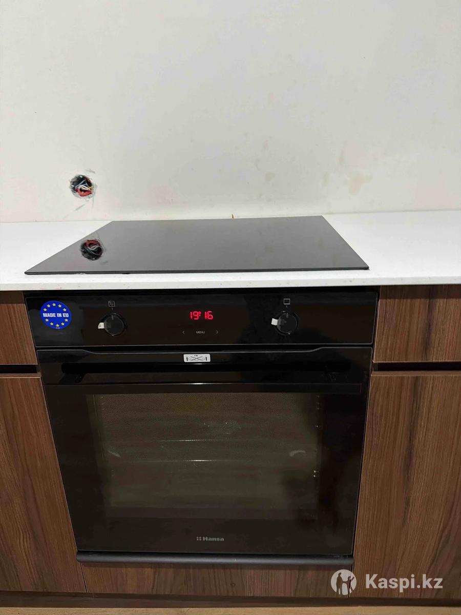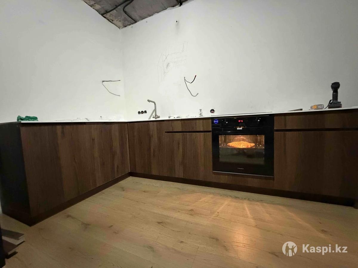 Новый кухонный шкаф из Egger и столешница из искусственного камня. Размер примерно 3м на 1,10м. Скрытые ручки, есть остатки материалов. Без техники, но с раковиной. Адрес Байтурсынова 36