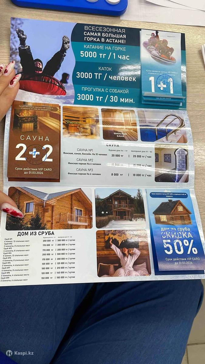 Продам купоны действует до 1.03.2026 4 купона на горки 2 купона на сауну 1 купон на дом из сруба