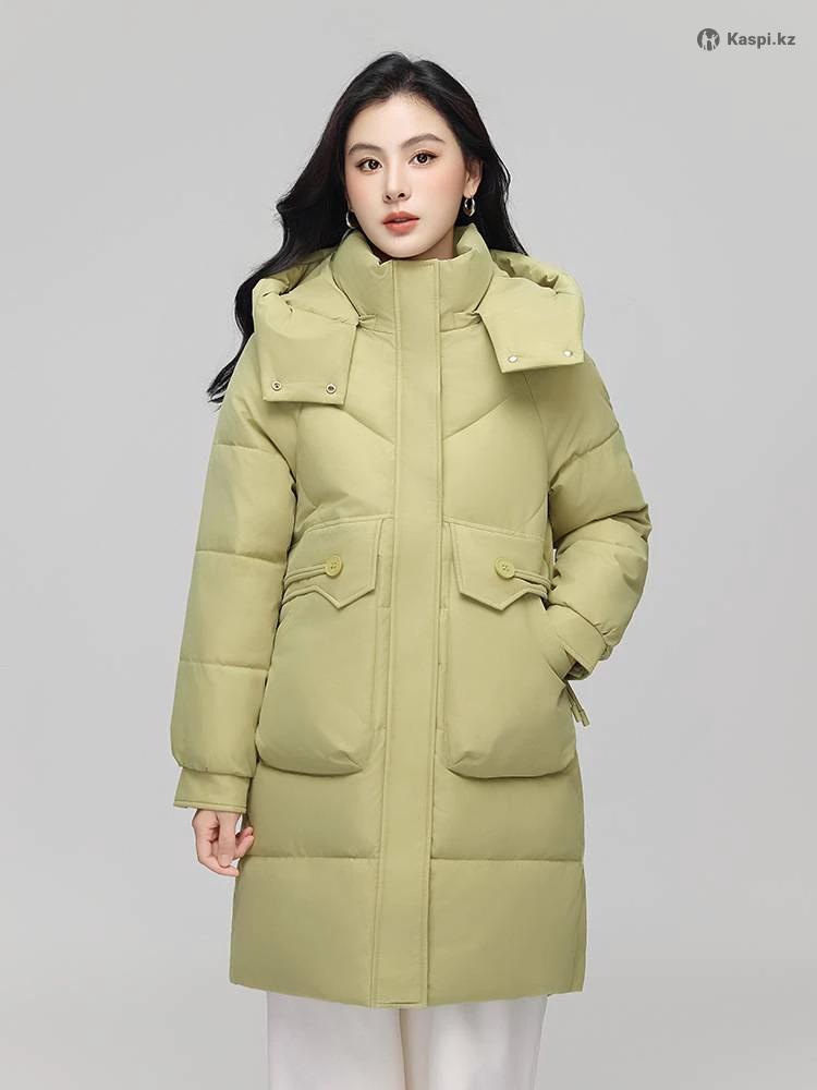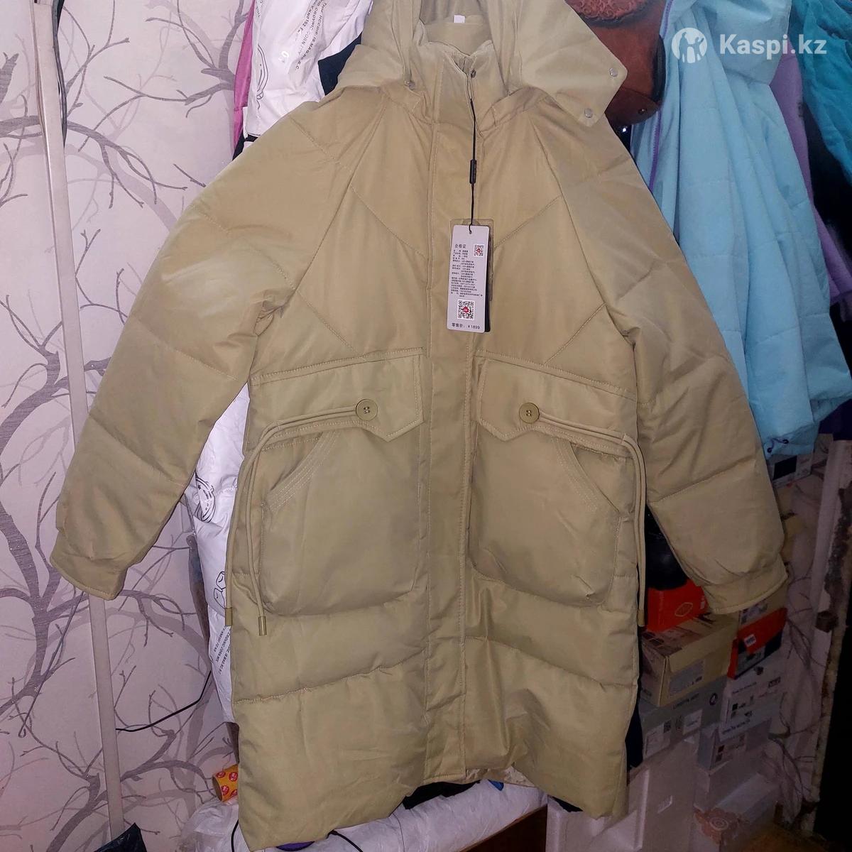 Удлиненная куртка женская с капюшоном, рост 165см,размер L, на 48. Цвет оливковый, светлый, с карманами накладными. Застежка молния, кнопки. Очень теплая.
