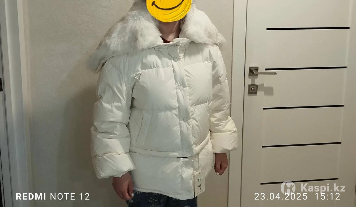 Продам женскую зимнюю куртку. Куртка оверсайз подойдёт на 48-50 Белый цвет с этикеткой. Мех убирается. Также можно её укоротить или удлинить внизу есть замок.