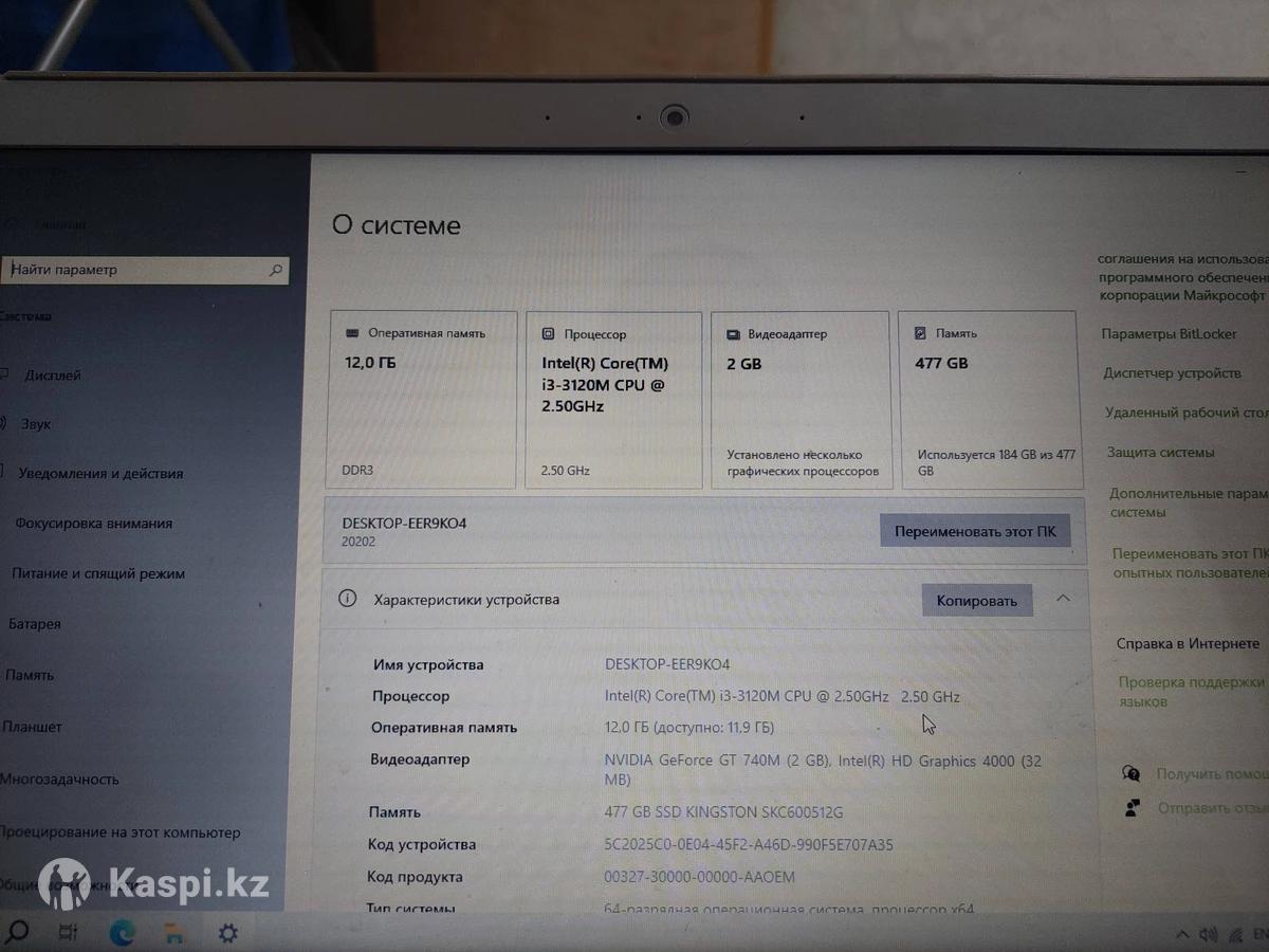 Nvidia GeForce GT 720M 2gb Оперативная память 12гб Жесткий диск 500гб ПО Windows 10 Все отлично работает но есть не достатки в корпусе на фото все видно.