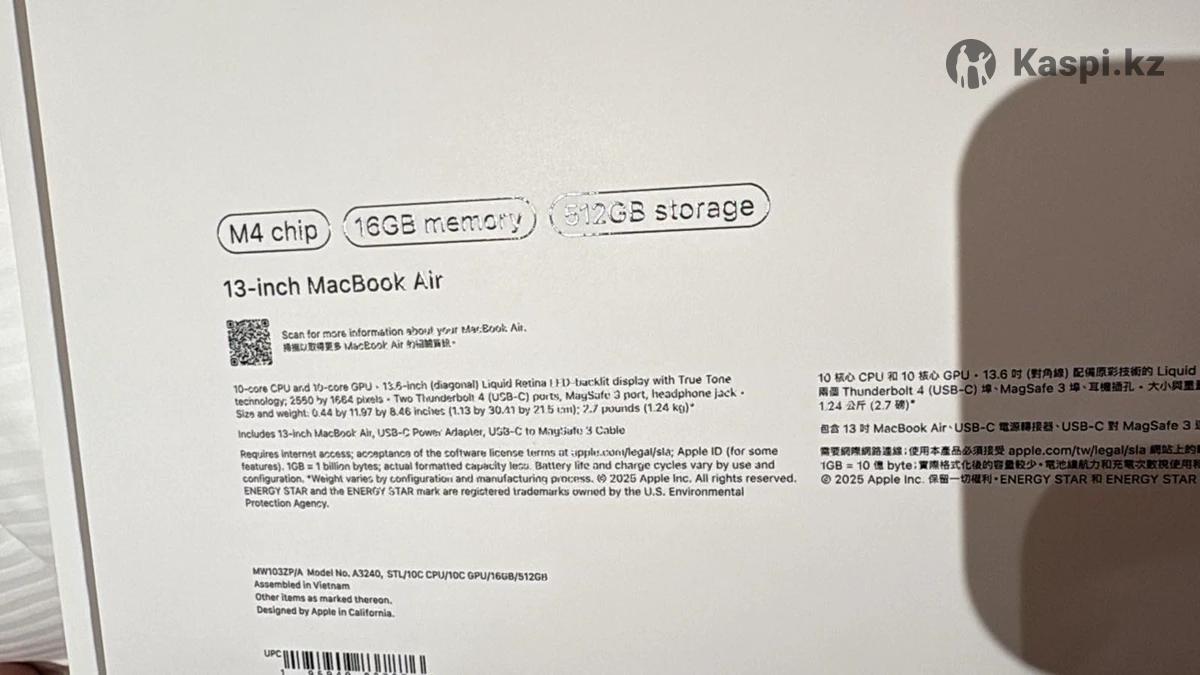 MacBook Air 13” M4 (2025) Состояние: новое / запечатанное, не вскрывали, куплен в официальном магазине, имеется чек, дата покупки, все документы. Стоимость без наценки Цвет: Starlight Диагональ экрана: 13,6 дюйма (Liquid Retina) Процессор: Apple M4 (8-ядерный CPU, 10-ядерный GPU) Накопитель (SSD): 512 ГБ