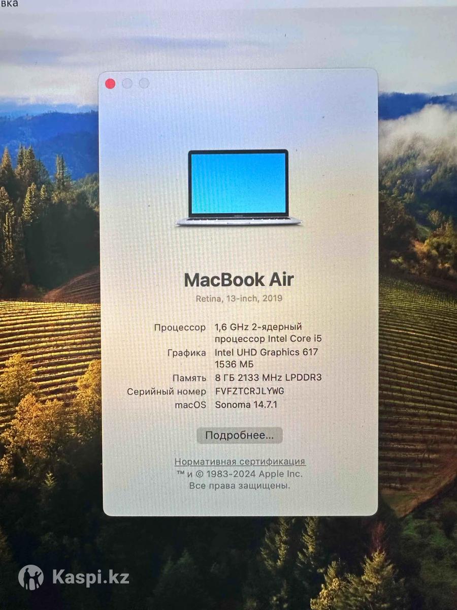 Продам MacBook Air 2019, 8Gb, 13-дюймовый. Объем памяти 120гб. ОС Sonoma. Состояние идеальное. Использовался только для учебы. Зарядка, коробка в наличии. ТОРГ ЕСТЬ