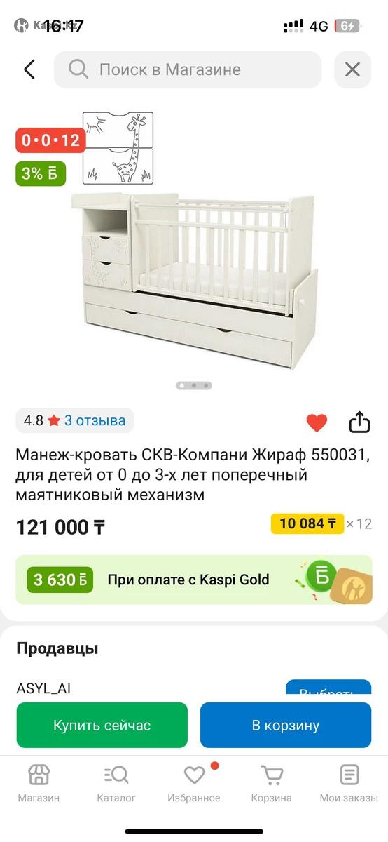Добрый день! Продам манеж с тумбой, может быть преобразован в детскую кровать если убрать качалку. Отдельно брали ортопедический манеж. Цена на каспи 120 тыс тенге, отдам намного дешевле, в разобранном готовом виде, в идеальном состоянии
