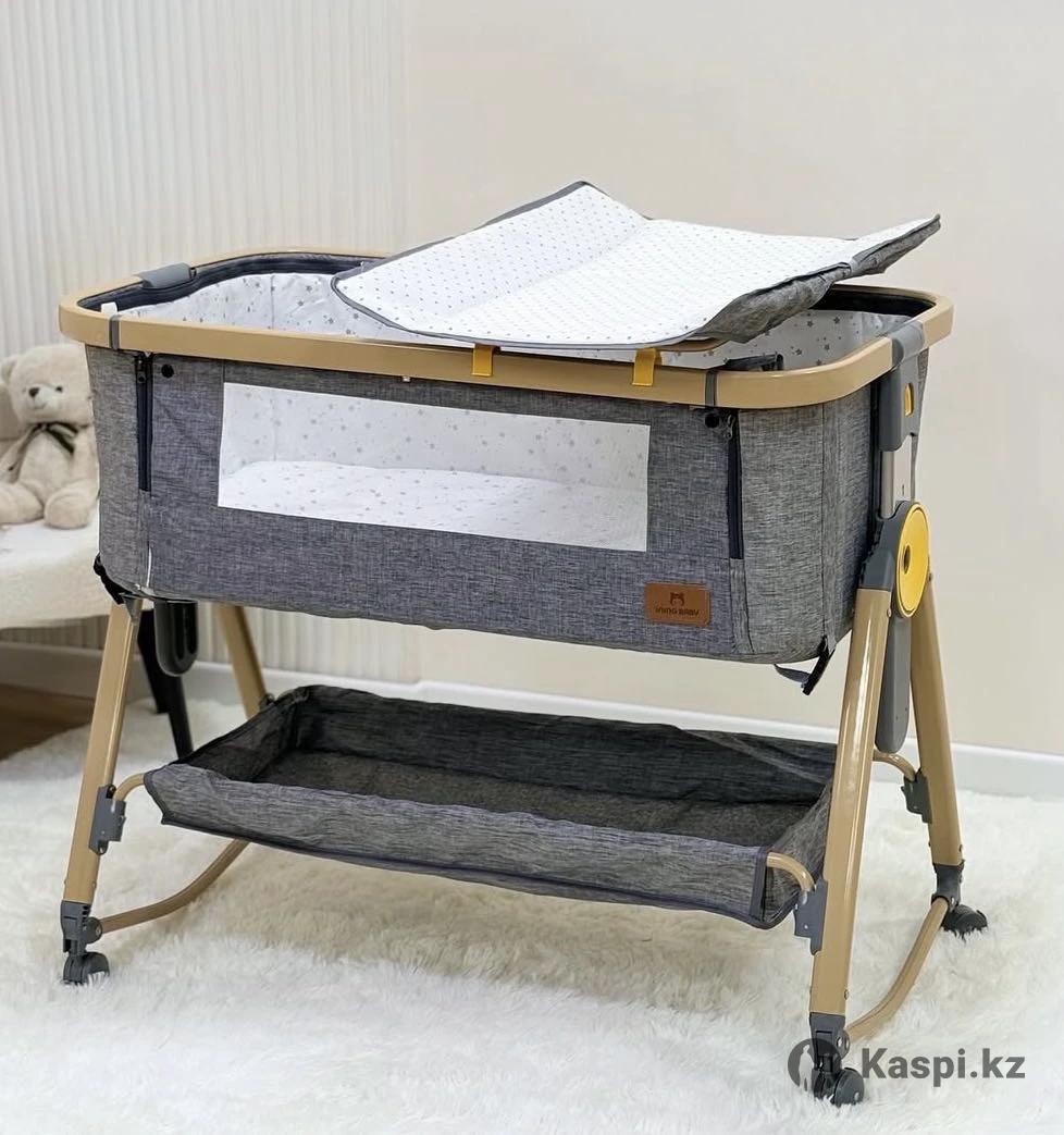 Продам в хорошем состоянии манеж(колыбель) кровать INING BABY Очень удобная и практичная кровать. Подходит для совместного сна с рождения. Можно регулировать высоту в 5 положениях, сняв боковой бортик и поставить кроватку вплотную к вашей. Есть полозья для укачивания. Снизу есть удобная полочка для хранения игрушек или аксессуаров. Кроватка на колесах + блокировка. Легко перемещать по комнате. Легко складывается. Удобно брать с собой. В комплекте: пеленальная доска и антимоскитная сетка. +Торг уместен