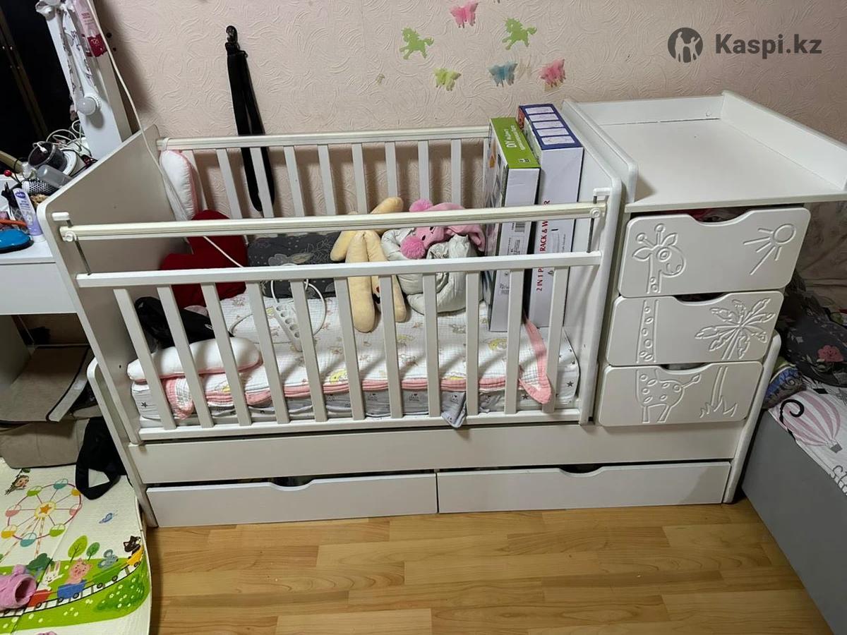 Продаю детскую кроватку , сверху все убирается как трансформер снизу идет кровать уже для ребенка после 5 лет , вообщем удобная вещь , матрас новый не использовали , ребенок привык спать с нами на кровати . Максимум сидела играла в ней