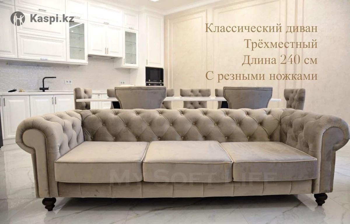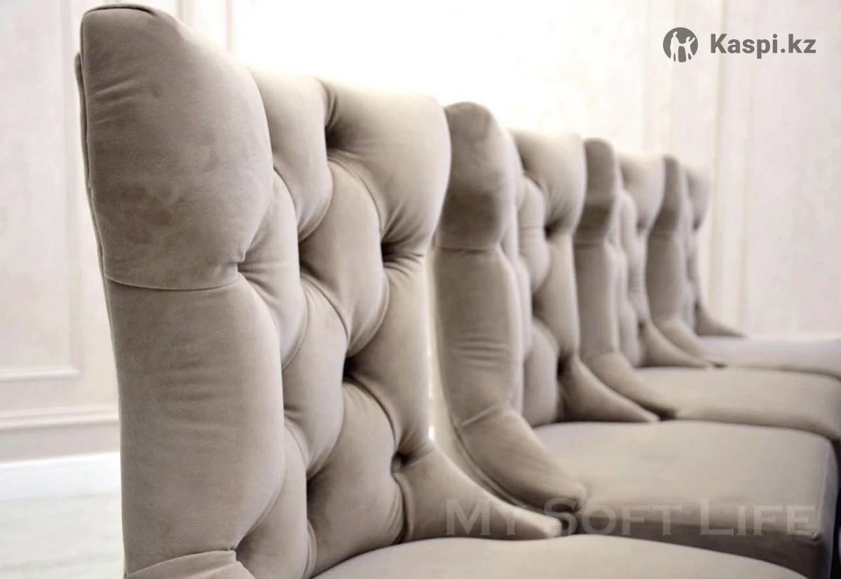 Продам диван и два кресла, также 8 стульев. В хорошем состоянии. Ткань велюр, ножки резные натуральное дерево. Стулья можно приобрести отдельно от дивана. 1 стул — 50.000 тг