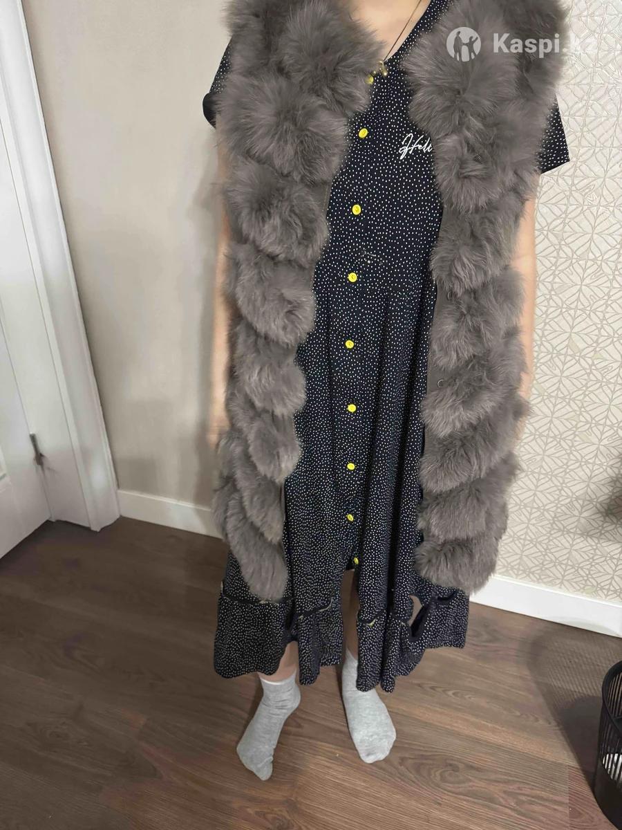 Продам меховой жилет в отличном состоянии из песца, натуральный коричнево-серый цвет длина 80 см размер 42-44-46
