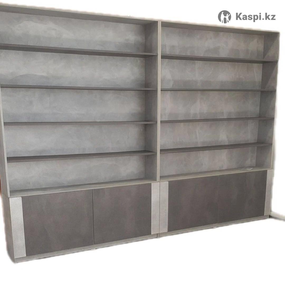Продам стеллажи: 1) Шкаф-стеллажи, 2 шт (Лдсп) 180000тг 2) Металлические стеллажи 2 шт 350000тг 3) Ресепшн (Высота-114, 5 см; длина-90 см; ширина столешницы-50см, ширина нижней части 40 см, ширина верхней части 22 см) 50000тг Все вместе:550 тыс тг Описание и размеры указаны на фото